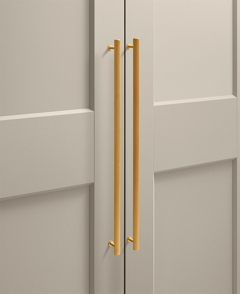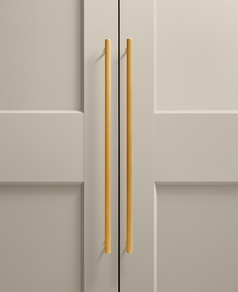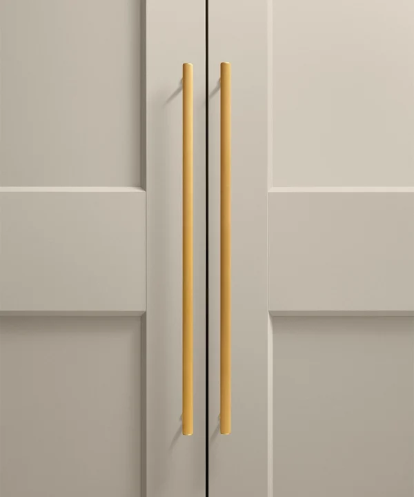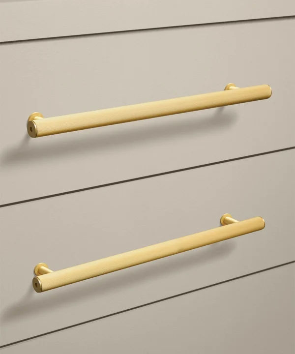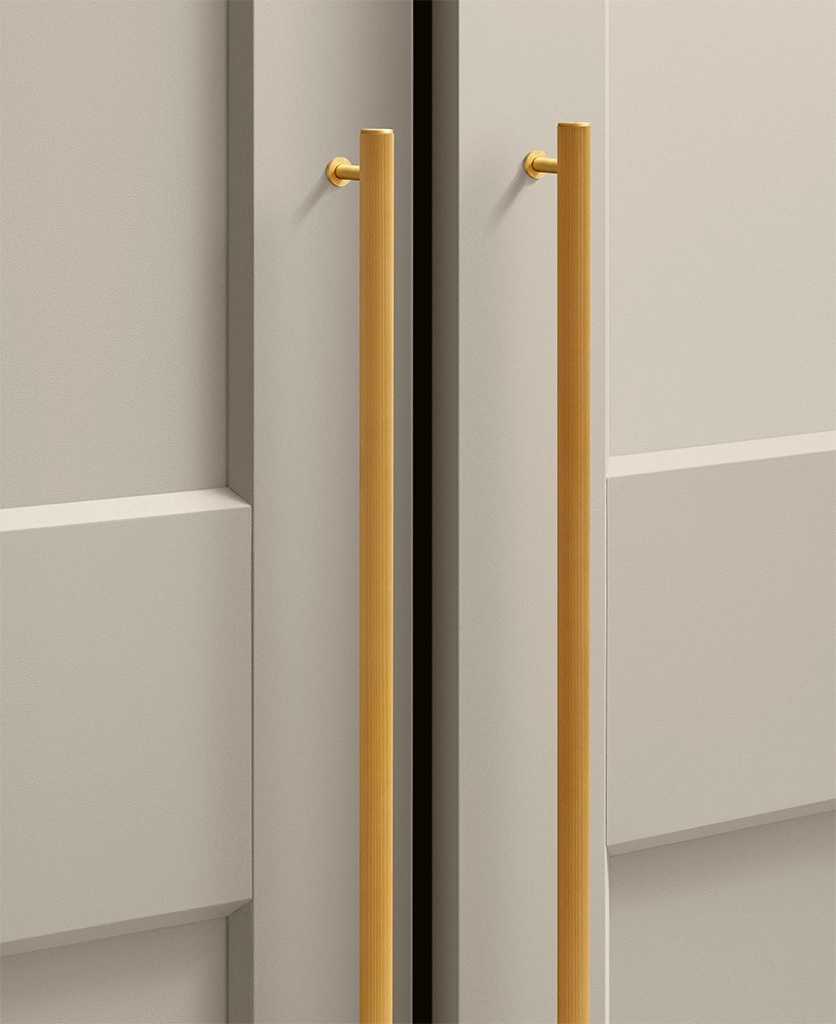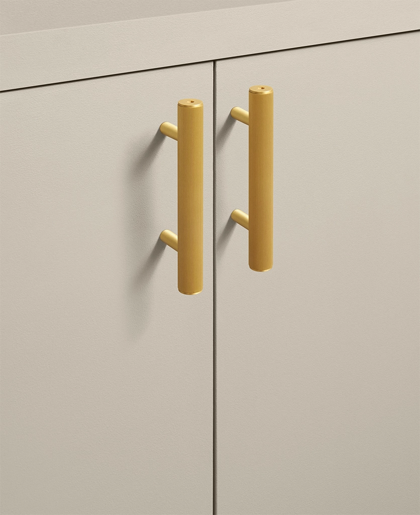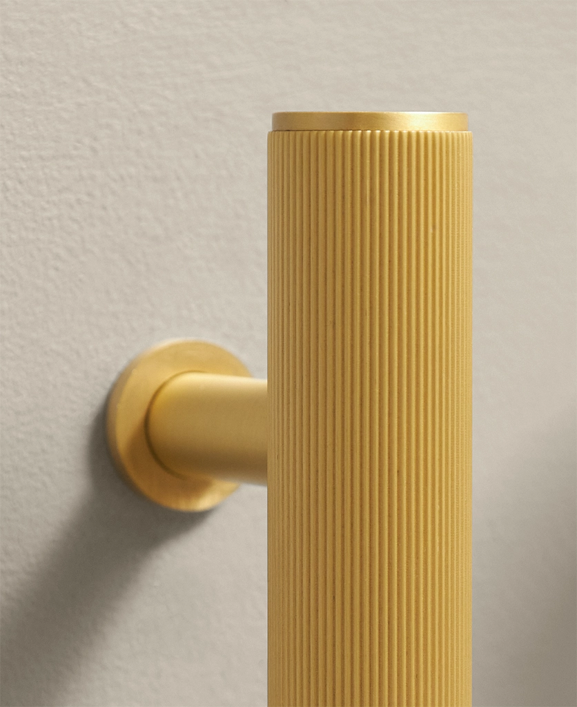 Gold Portico ribbed handles sit beautifully in kitchens, dressing rooms and utility spaces alike. Their architectural form brings structure to shaker cabinetry, while the warm gold finish adds depth to modern homes that risk feeling flat or overly minimal. They’re particularly well suited to neutral palettes, natural stone worktops and layered lighting schemes where material choice does the heavy lifting.