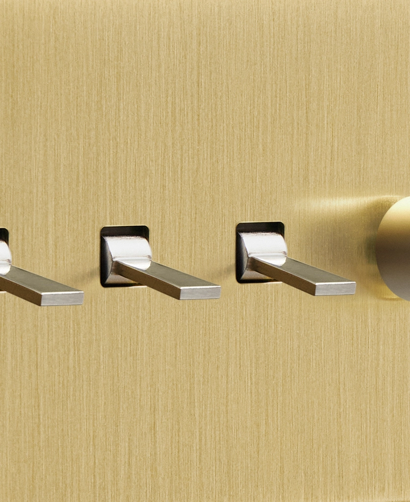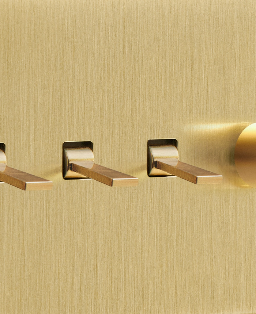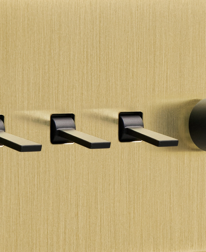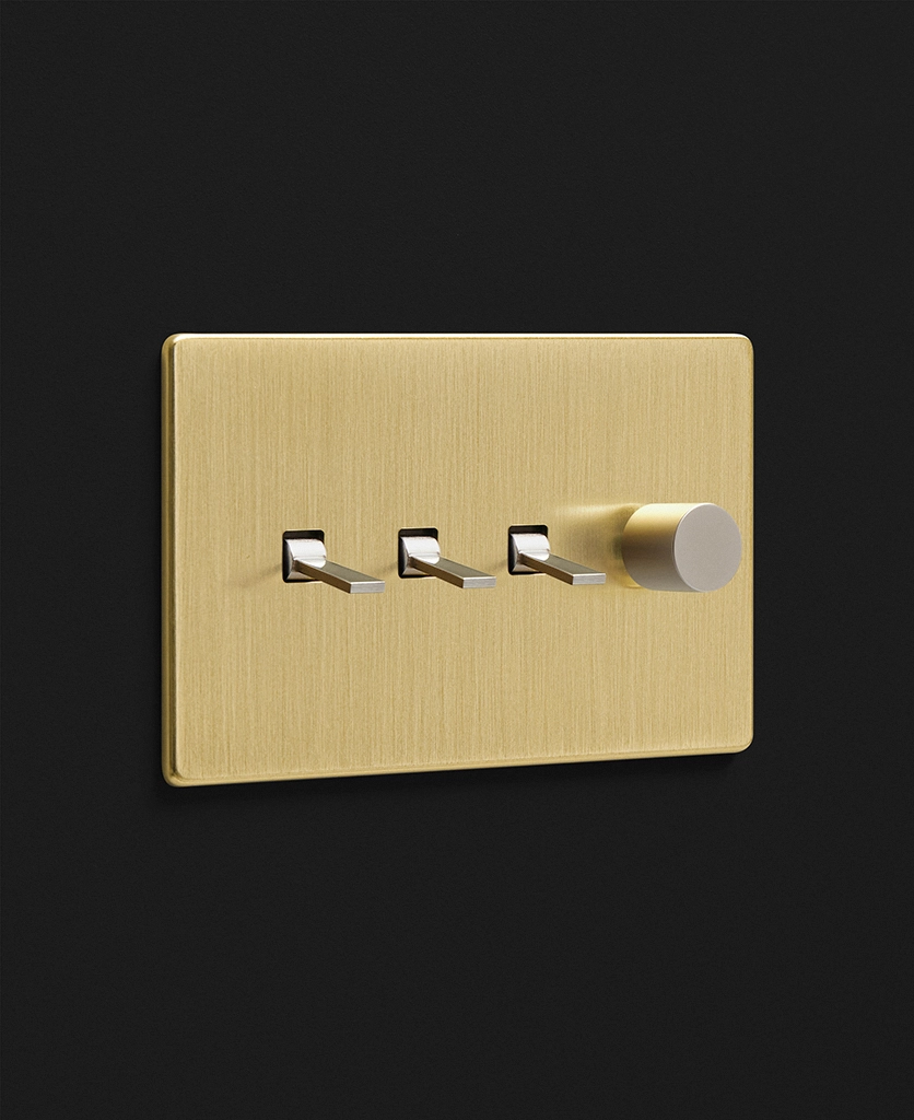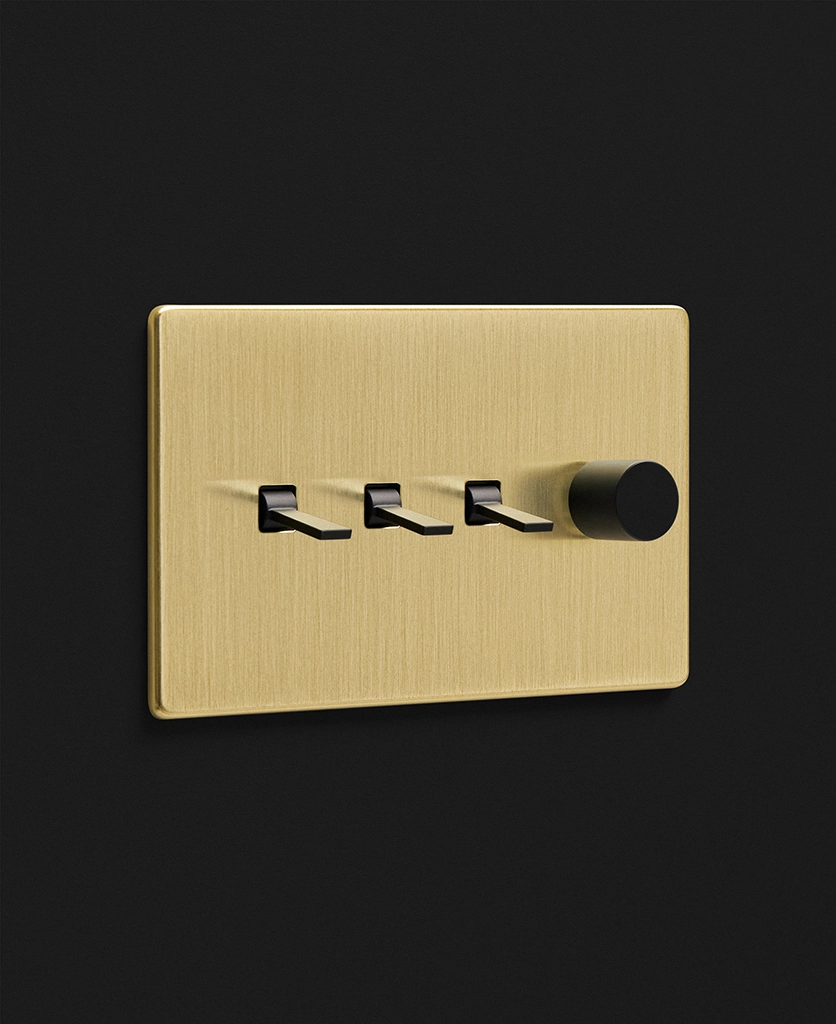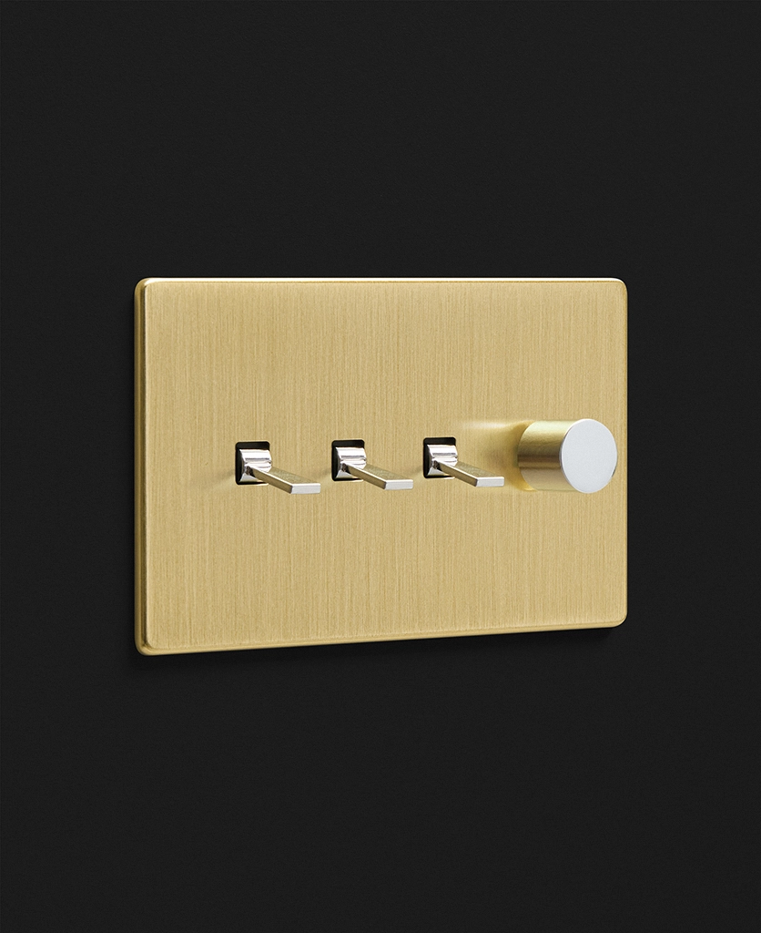 Twisting the brushed gold dimmer switch, you watch the wall light above your armchair glows to life, gently illuminating your cosy corner. Having dimmers and toggles on one switch plate gives you complete control over your lighting, enabling you to flick on the 'big' light when completing tasks on dark winter days before dimming your wall sconces to create a soft ambience in the evenings.
