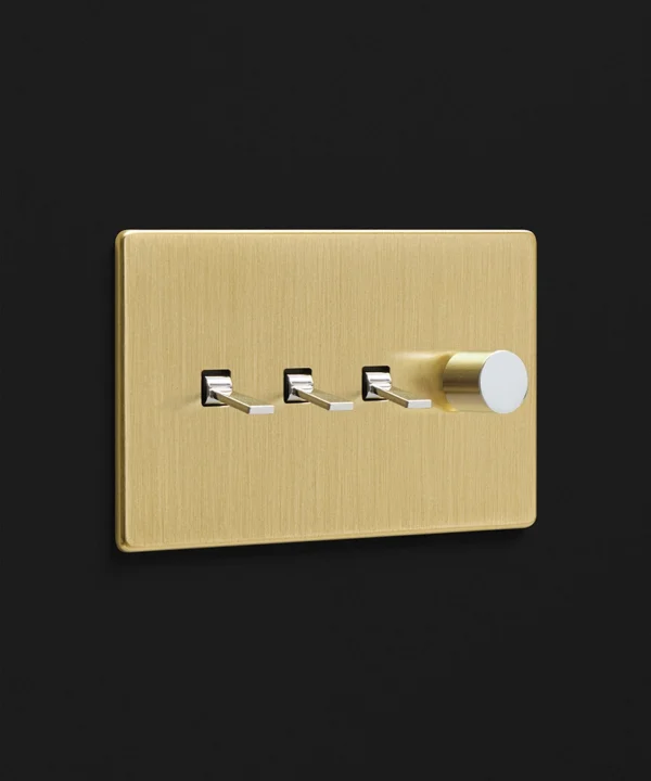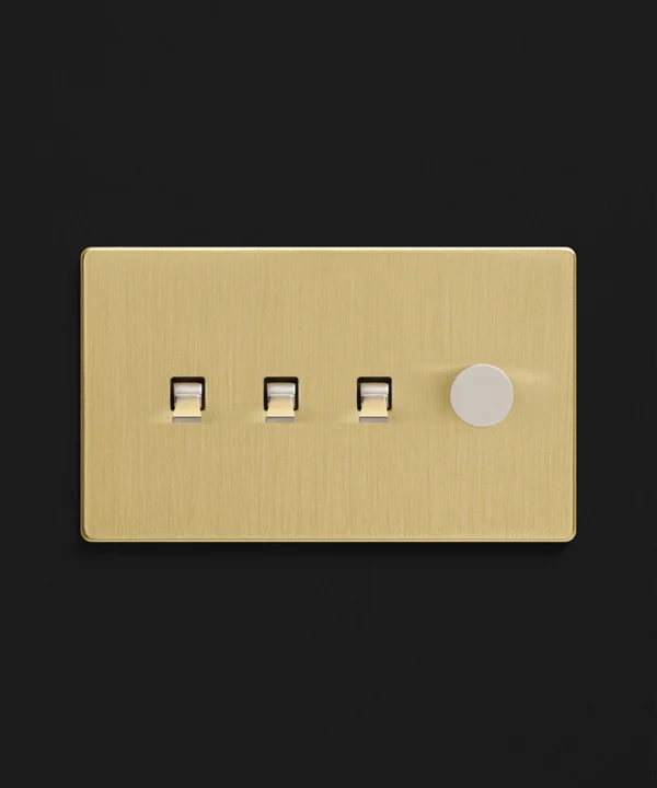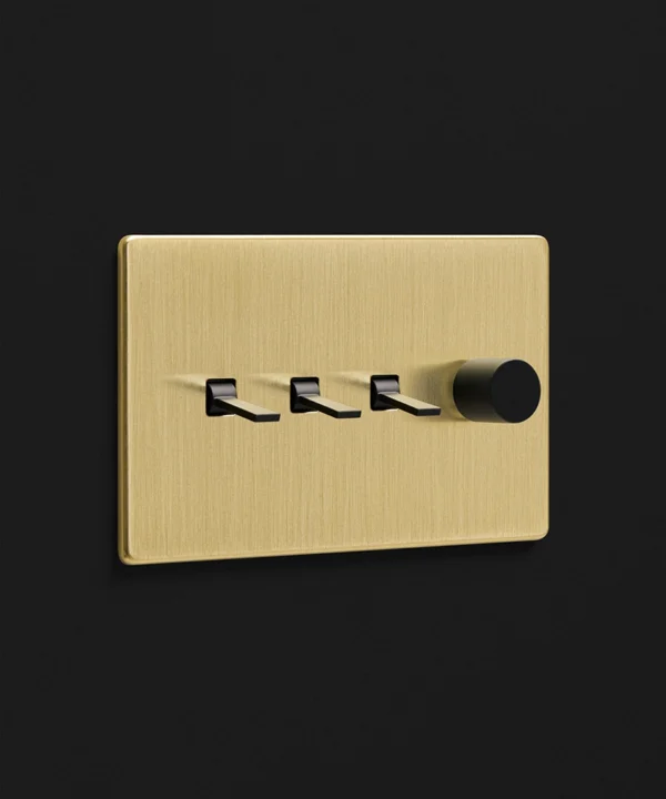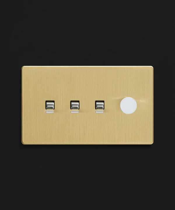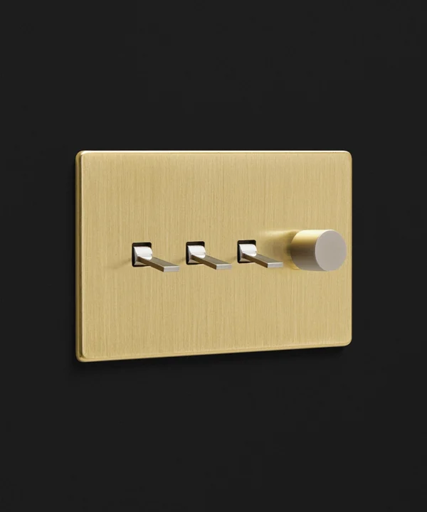 Gold quadruple combo switch (3 toggle, 1 dimmer)
