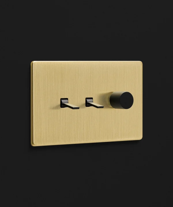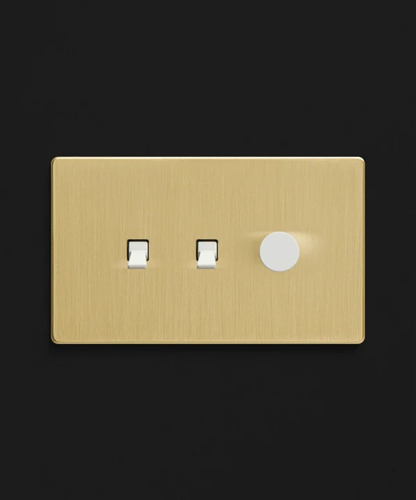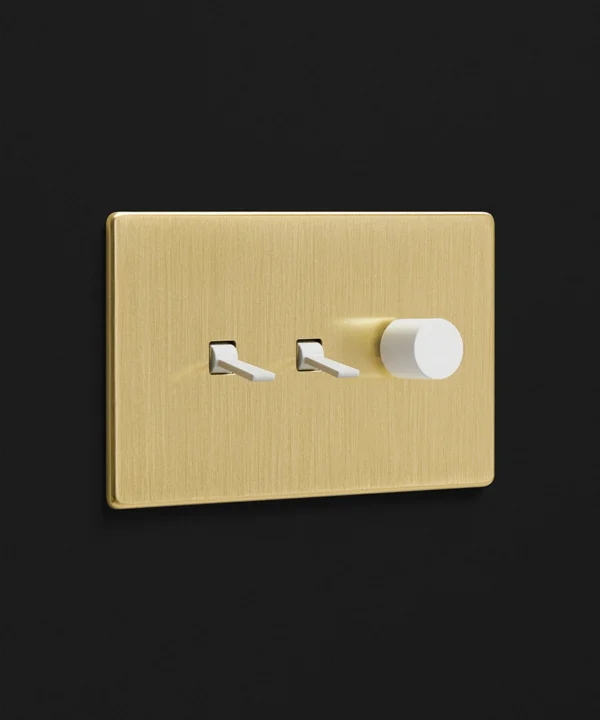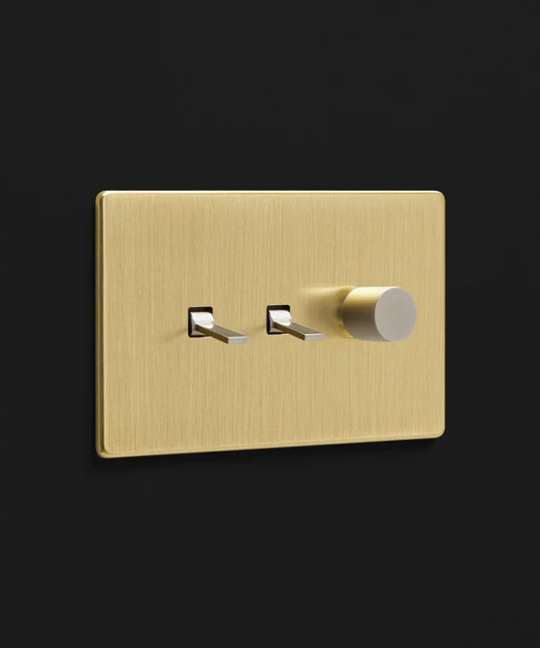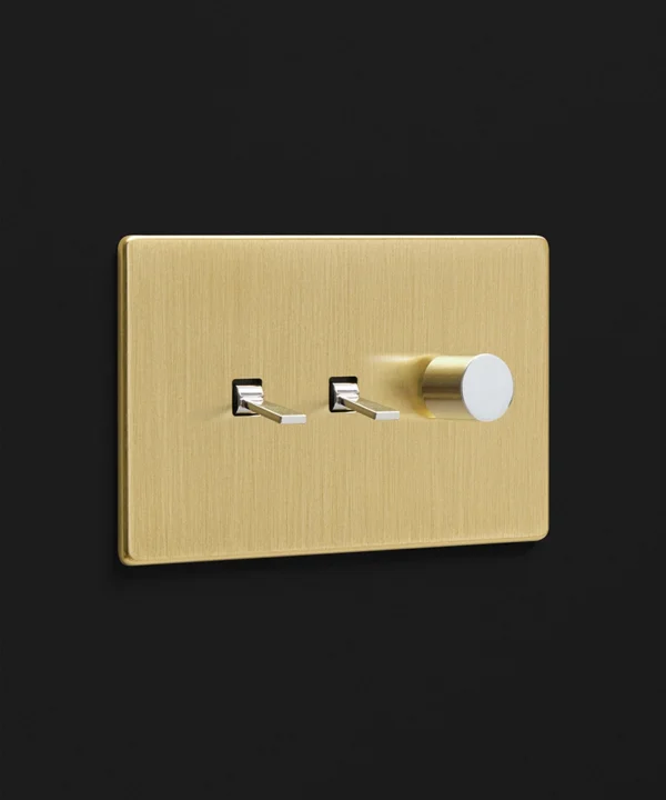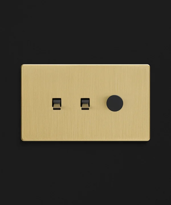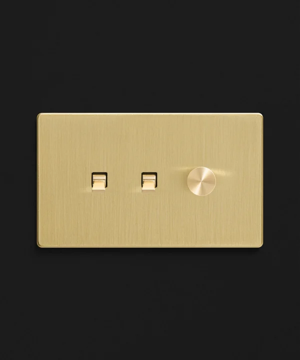 Gold triple combo switch (2 toggle, 1 dimmer)