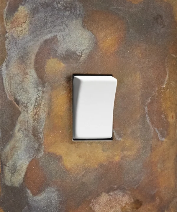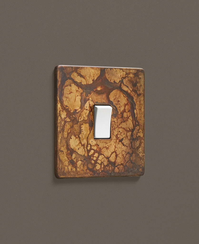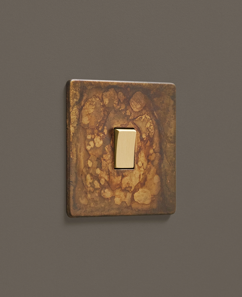 - This finish is made to change and age with wear, making each switch unique, differing from batch to batch. We strongly advise ordering items for the same room together to ensure consistency. If fitted to freshly plastered walls, there is a chance the dampness will encourage the brass finish of this switch to corrode.