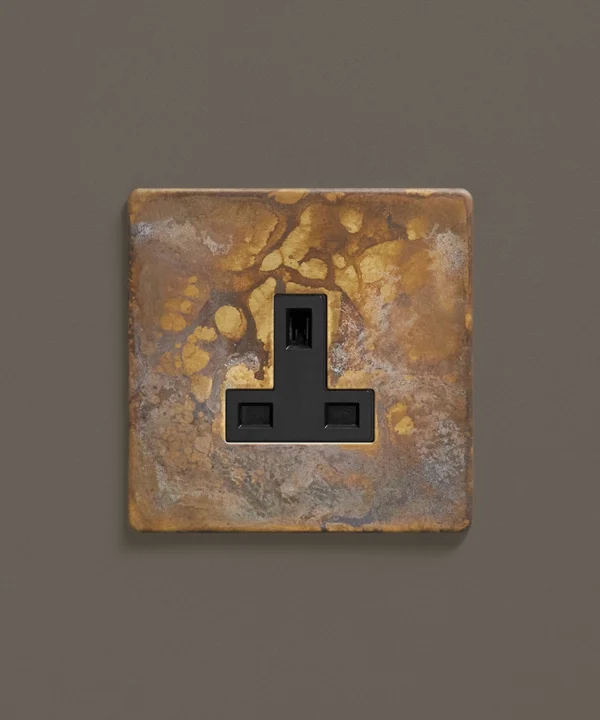 - Our elemental gold finish is made to change and age with wear, making each switch unique, differing from batch to batch. We strongly advise ordering items for the same room together to ensure consistency. If fitted to freshly plastered walls, there is a chance the dampness will encourage the brass finish of this switch to corrode.