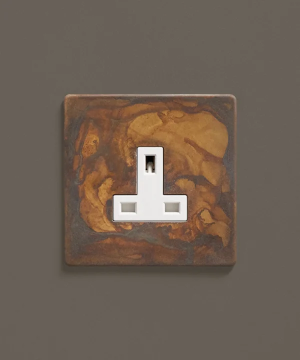Each metal plug socket features a decadent elemental gold plate with beautiful swirls of greys and browns running across the surface. The switch itself also has a neat and minimalist design with smooth rounded edges and concealed fittings to complete the stylish feel. Choose between a black or white insert to coordinate with the rest of your interior design scheme.