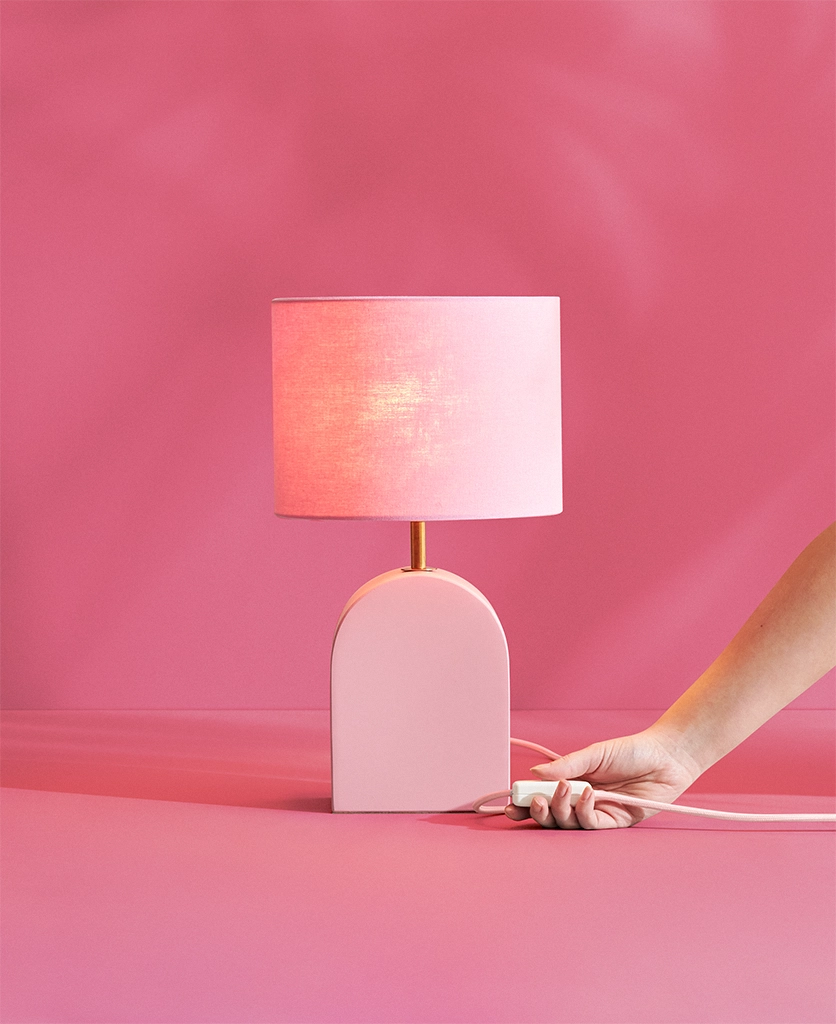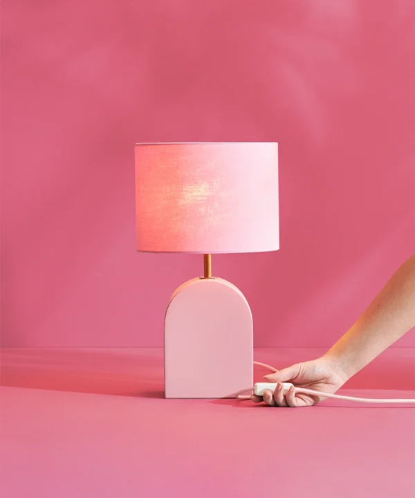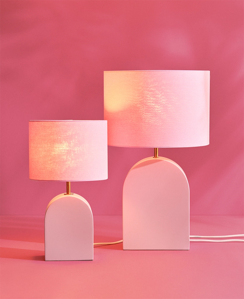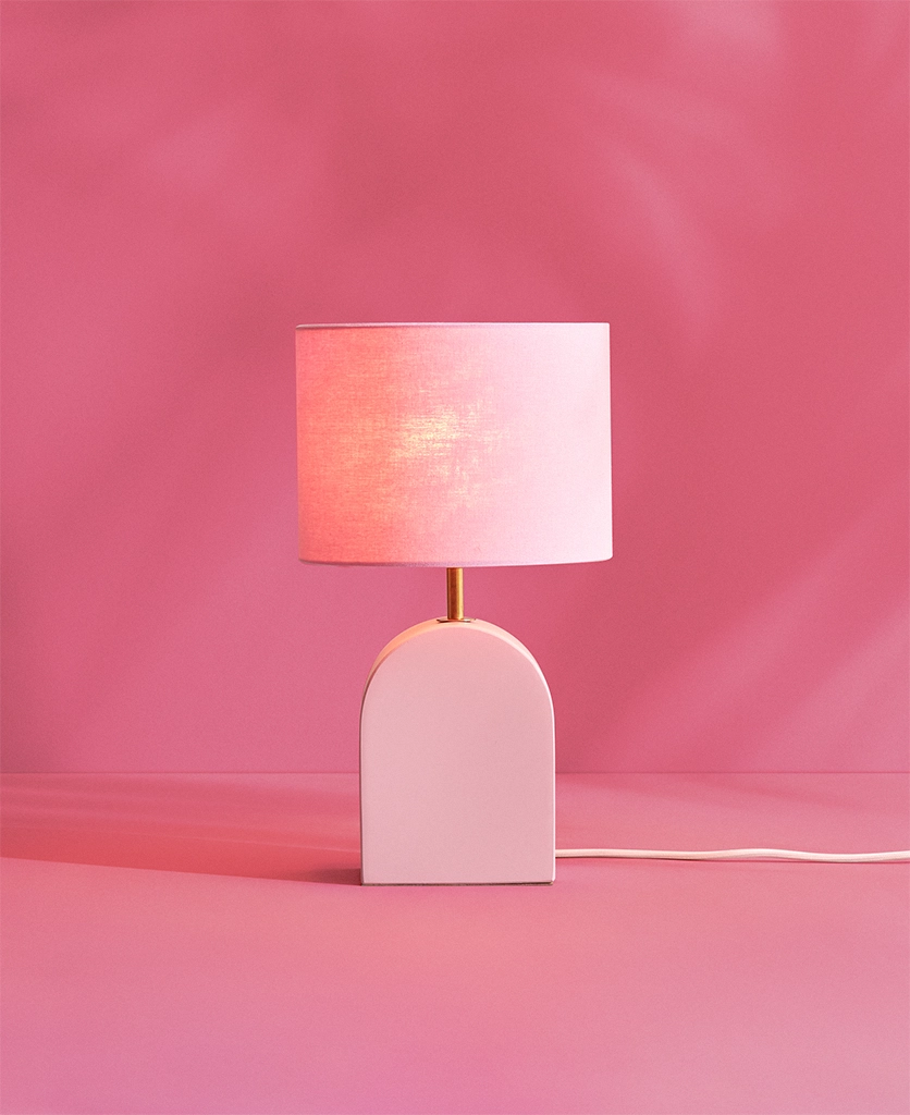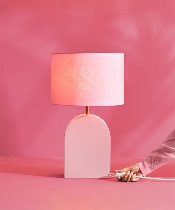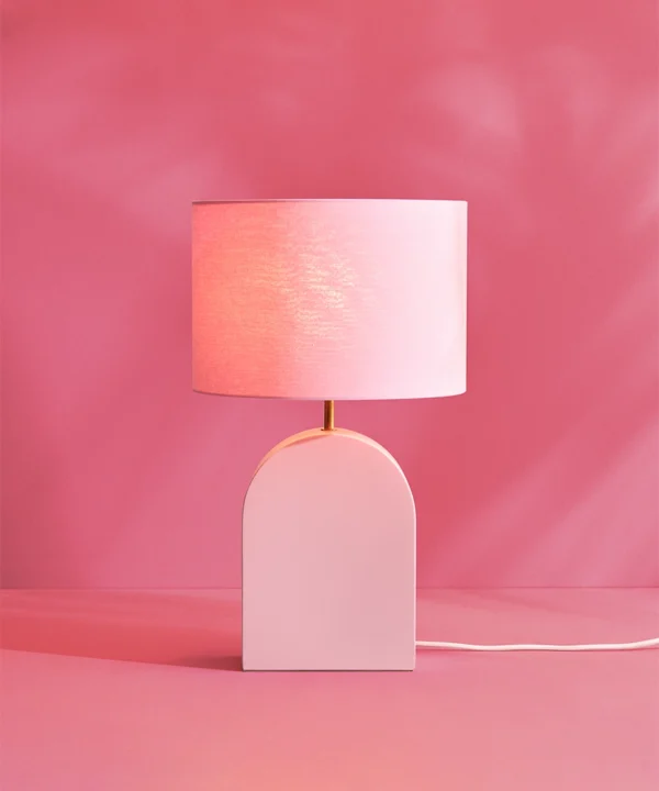 The Miami Pink Arch Table Lamp: Soft colour with bold personality
