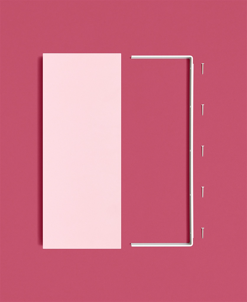 Made from steel and powder coated in-house. Hidden wall fixings give a clean, floating appearance. Indoor use only. Sold individually.