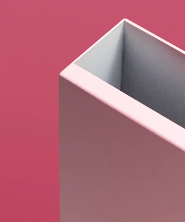 Styling your hallway, you reach for a candle to place on your floating shelf. It rests confidently against the pink steel backdrop — vibrant, polished, and unmistakably Miami. A flicker of fun that lifts the room without trying too hard.