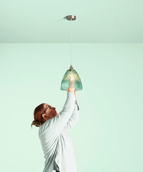 How to style it Hang in multiples above an island or use above a dining table to create a calm focal point. Pair with neutral palettes and natural materials to let the colour softly stand out.