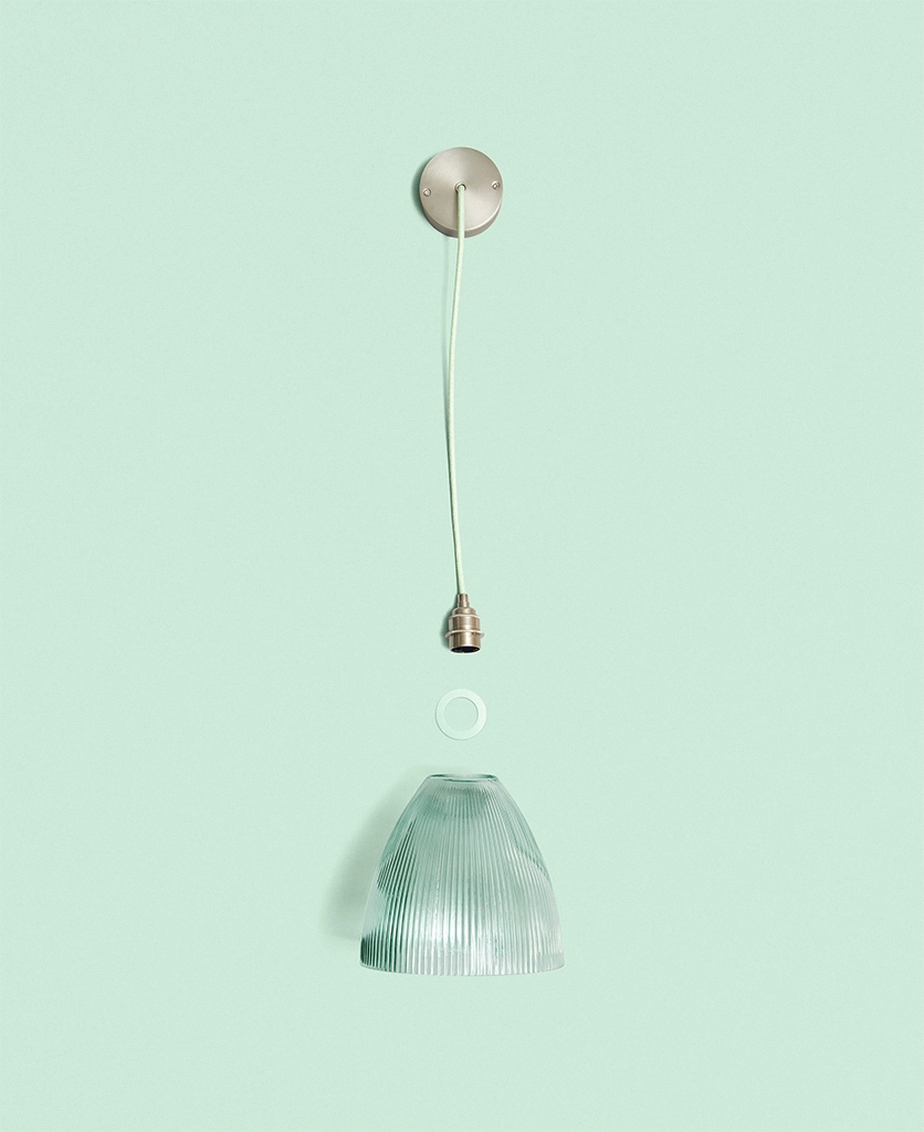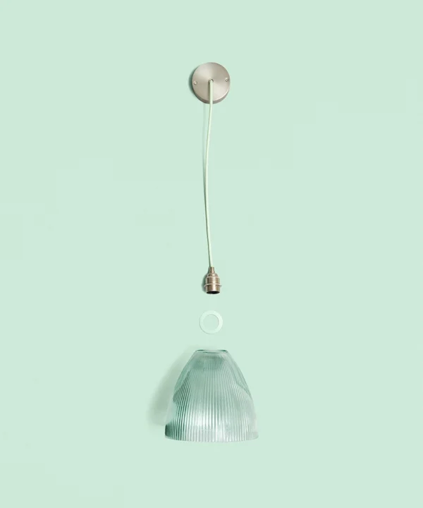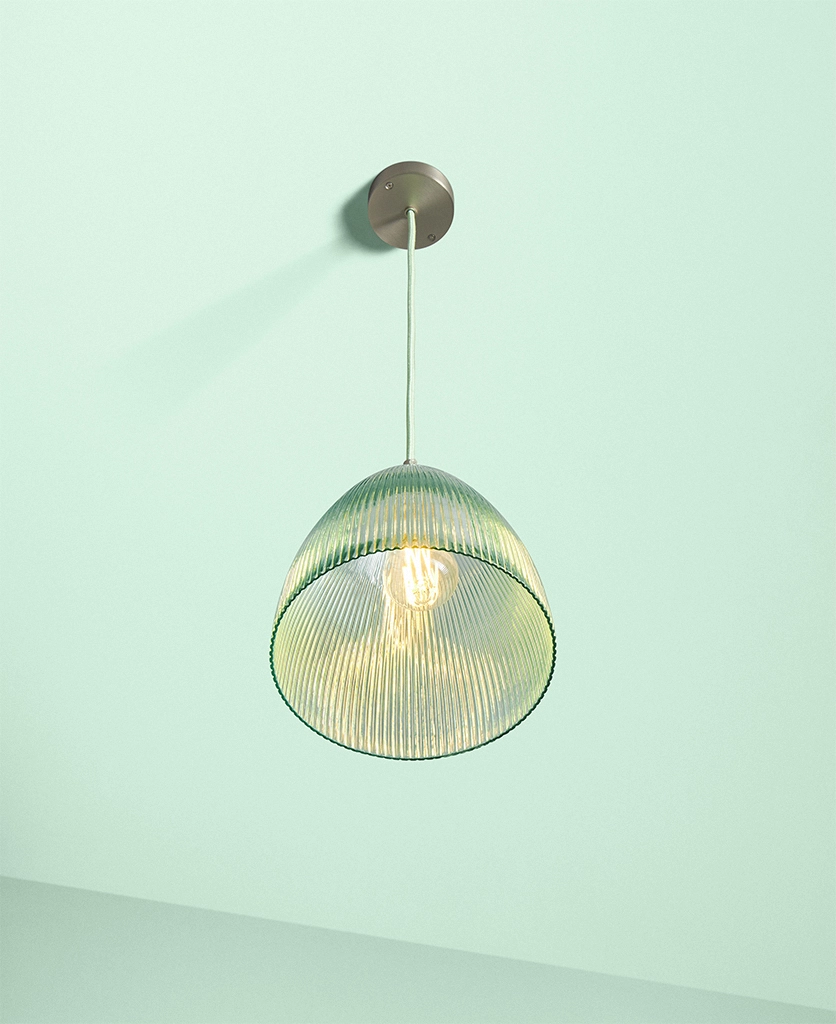 The Mint Evelyn Pendant combines softly fluted coloured glass with a deeper tapered silhouette, creating apparent delicacy with practical light distribution. It brings a calm pastel accent while directing light gently downward.