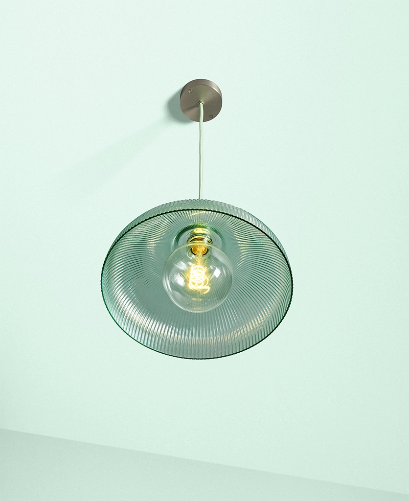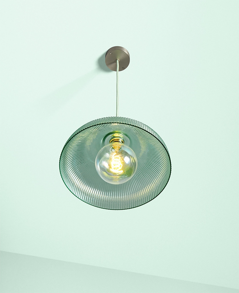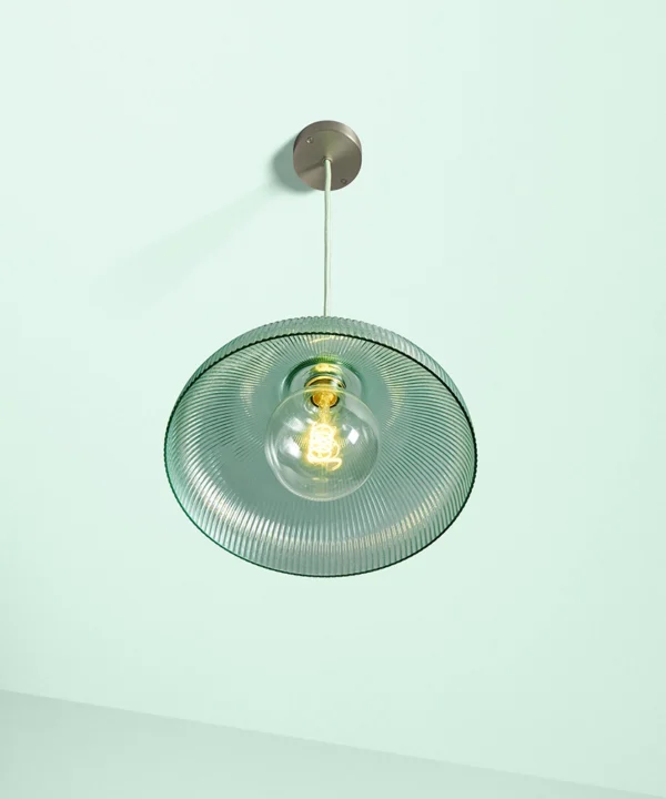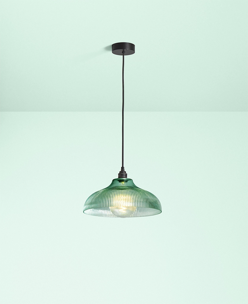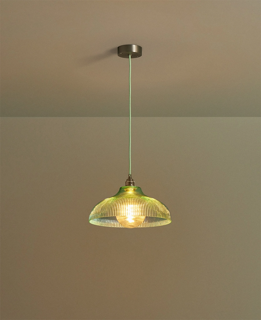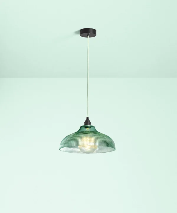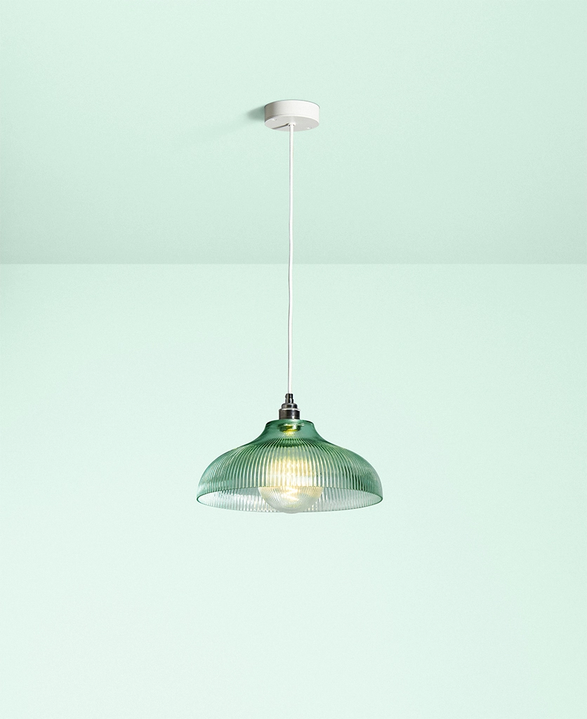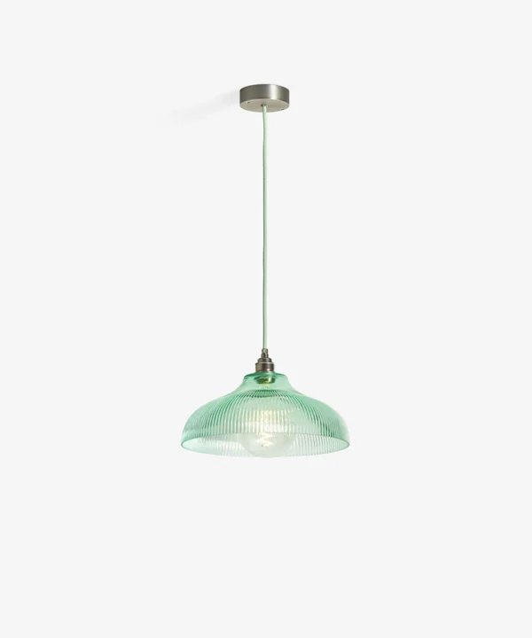A vintage-inspired fluted glass pendant designed to introduce soft mint colour and gentle texture to kitchens and dining spaces.
