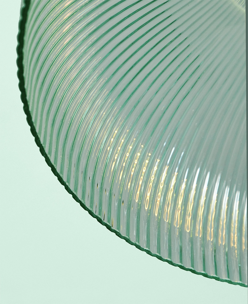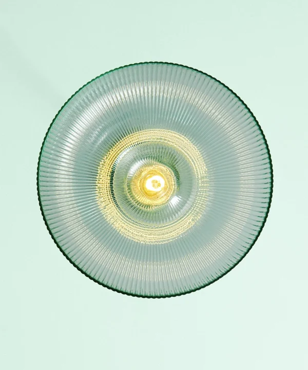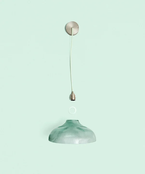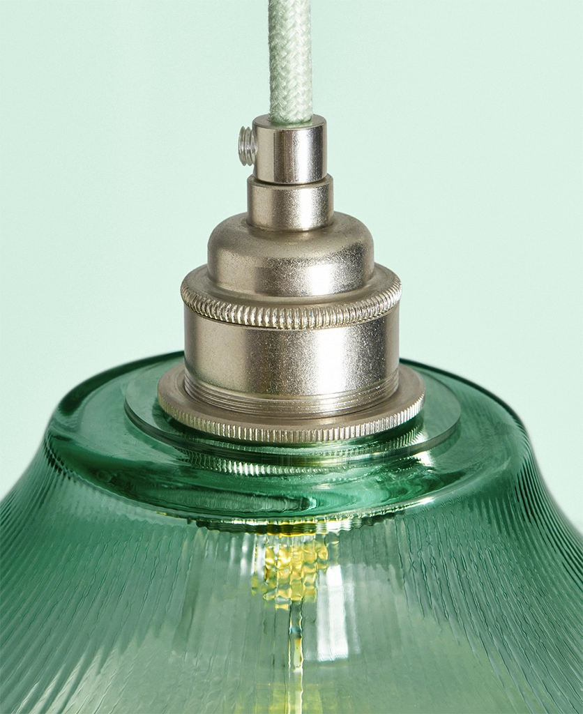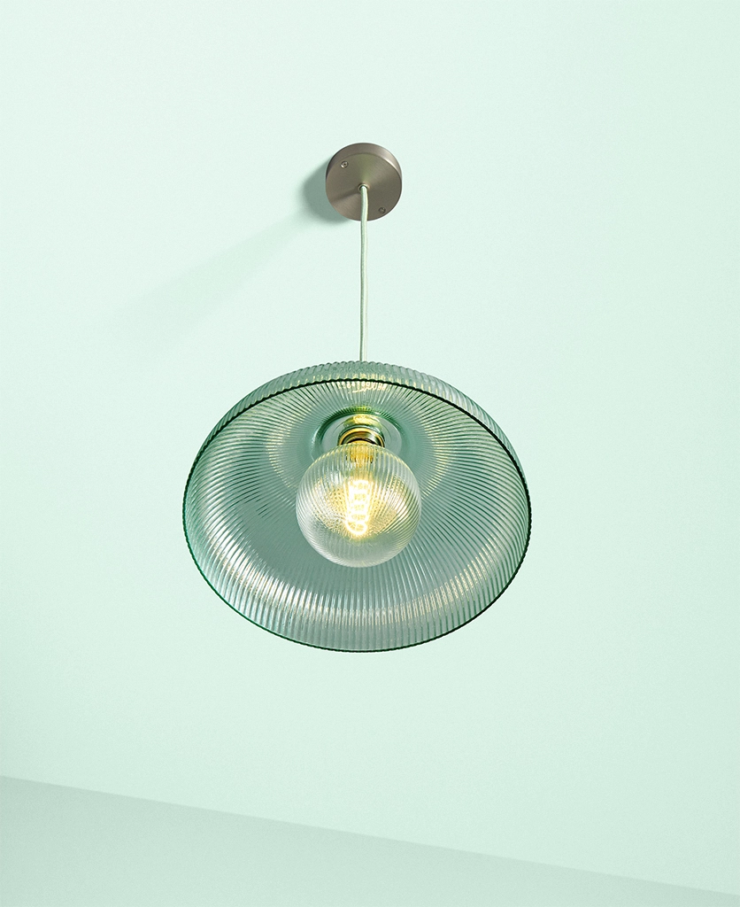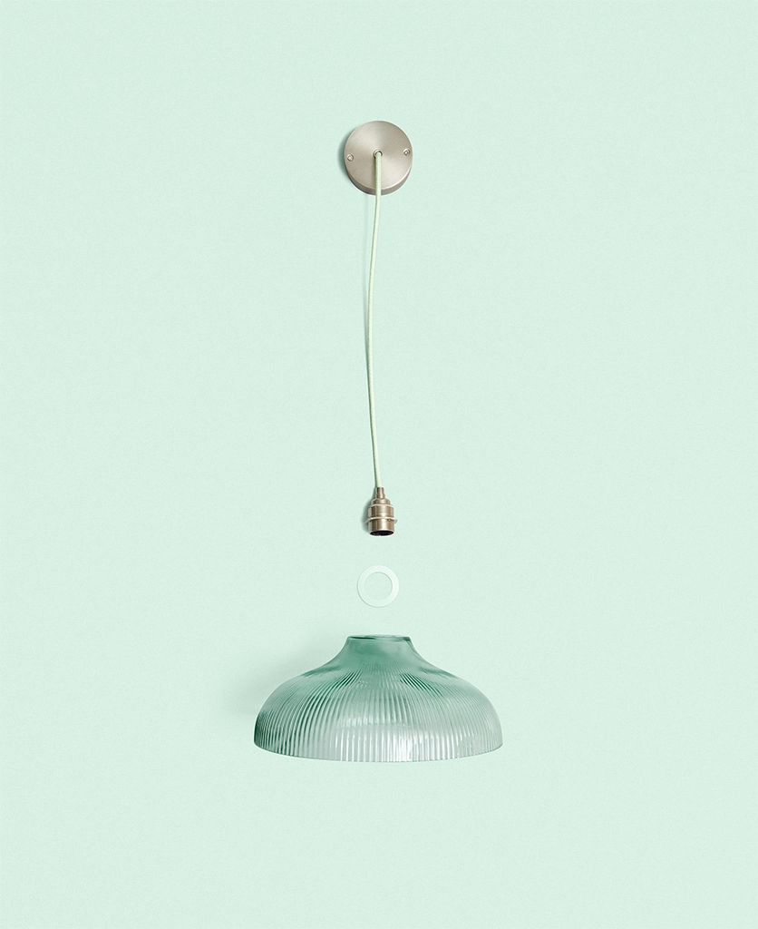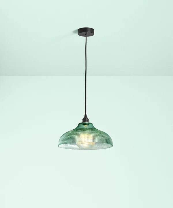 A vintage-inspired fluted glass pendant designed to introduce soft mint colour and gentle texture to kitchens and dining spaces.