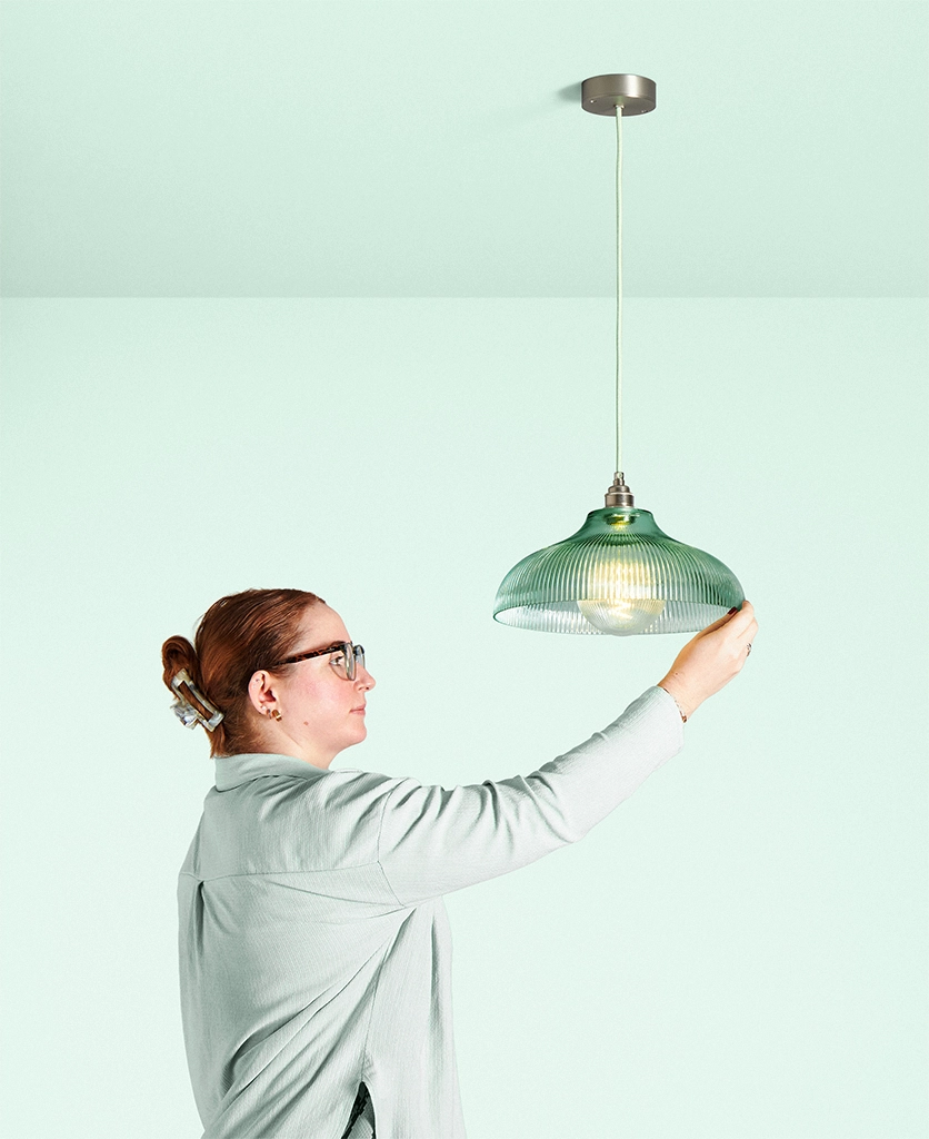 Why it works Fluted glass softens brightness while the mint tone adds interest without overpowering the room. Repeat the colour elsewhere to create a cohesive scheme.