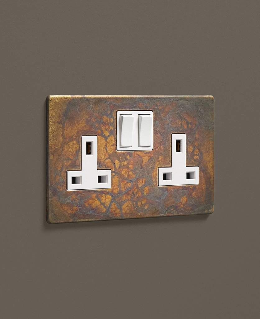 Our elemental gold multi plug socket is a beautiful way to integrate electrical points into your space, rather than have to spend time and energy disguising them. Most of us put up with the standard white sockets installed in our homes but redecoration of a room is the perfect time to take these into consideration. And they're not as hard to change as you might think - it's a straight-forward job for an electrician.