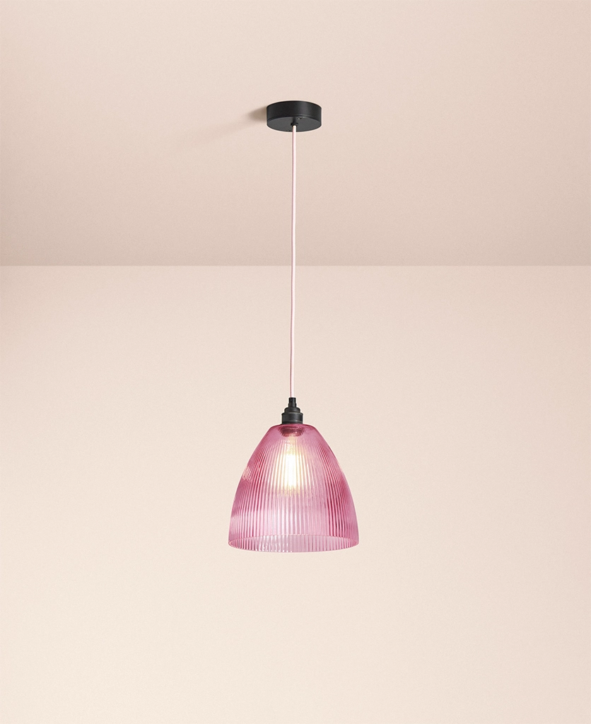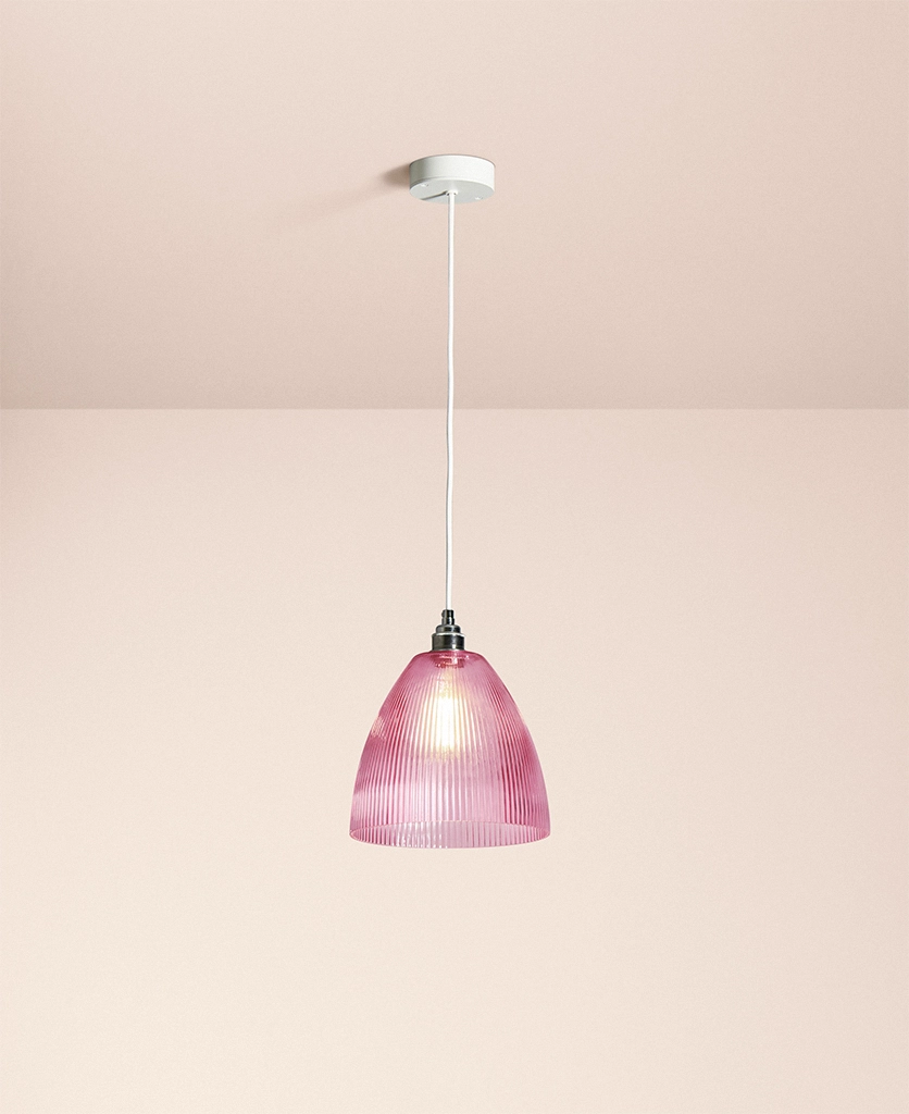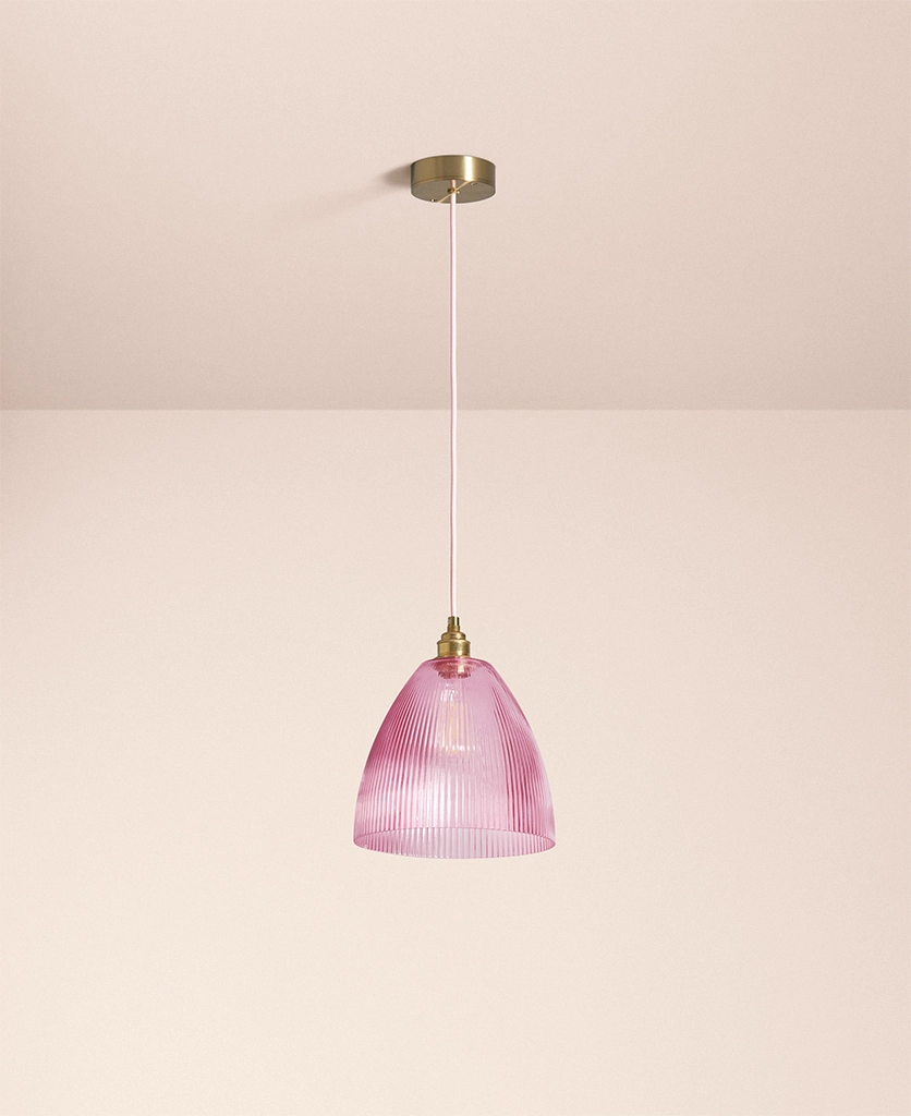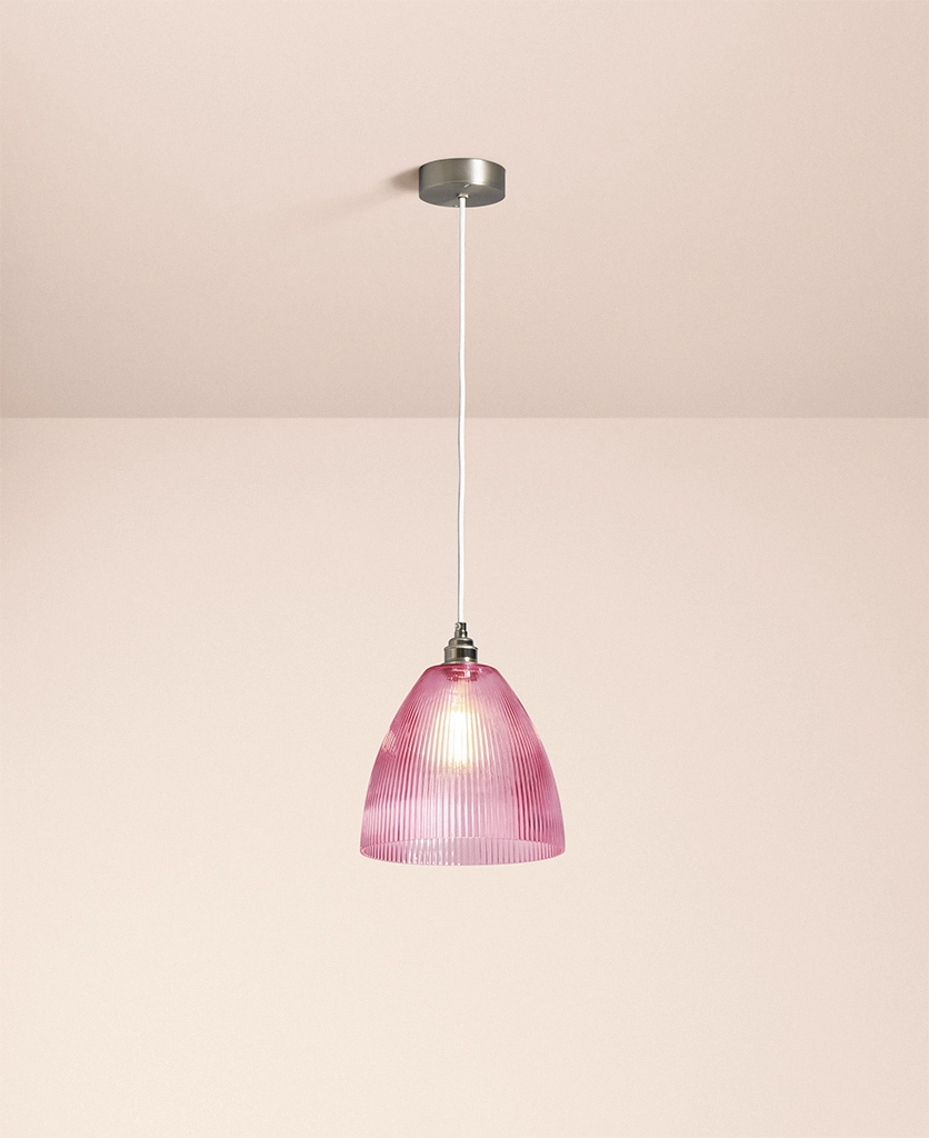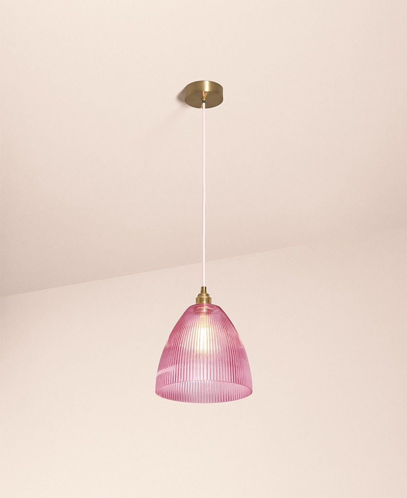 Home / Shop / Indoor Lighting / Pink Evelyn fluted pendant light