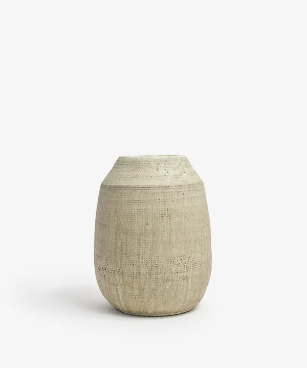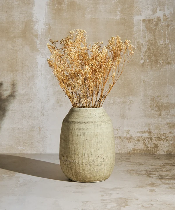 A timeless addition to interiors that favour texture over gloss, this stone-effect vase blends quietly into rustic, vintage, or Japandi spaces. Whether placed on a linen-covered bedside table or nestled among candles on a bathroom ledge, its calming presence brings balance and ease.