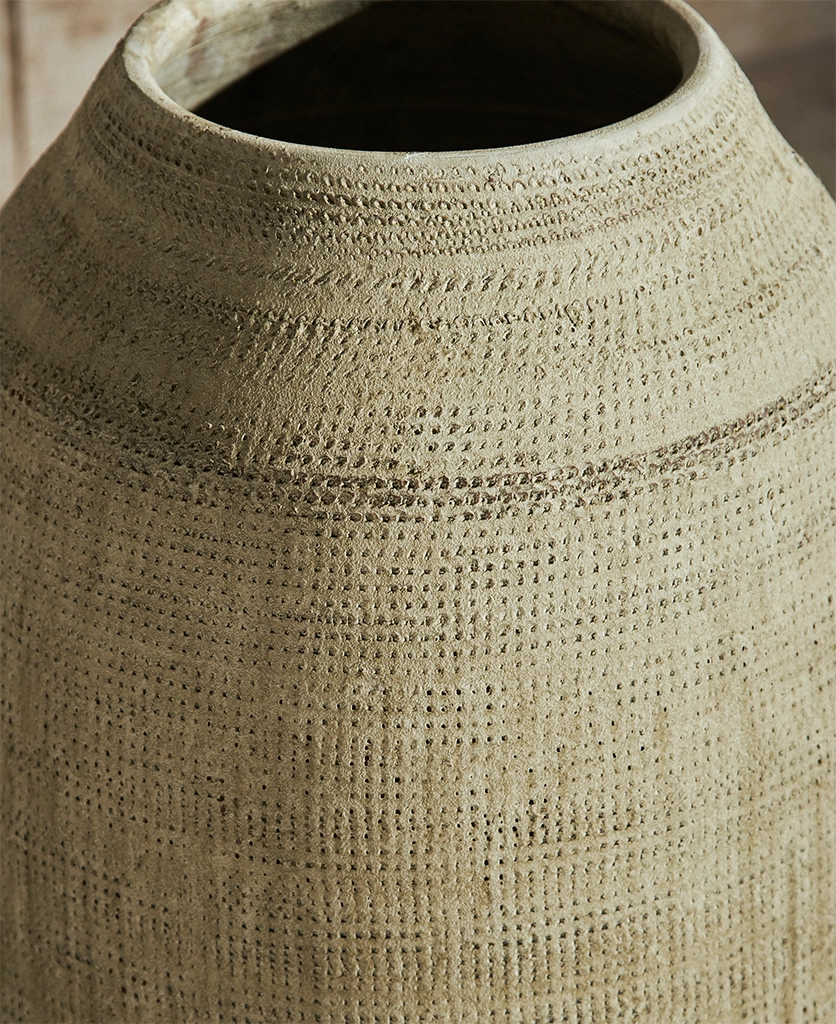Reaching for your morning coffee, your eye catches on the rustic stone vase resting on the kitchen table. It’s almost meditative — curved just so, its mottled surface worn like a pebble smoothed by water. You smile. Even empty, it feels considered.