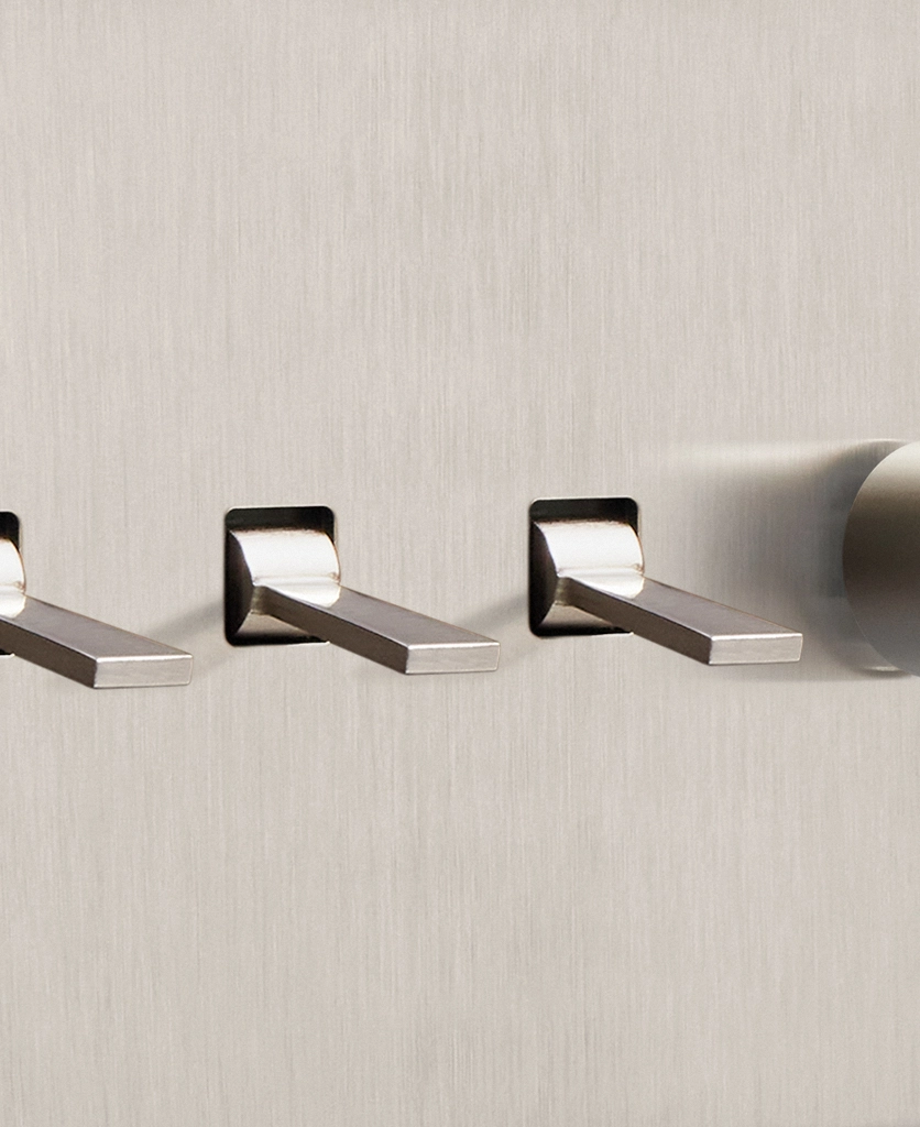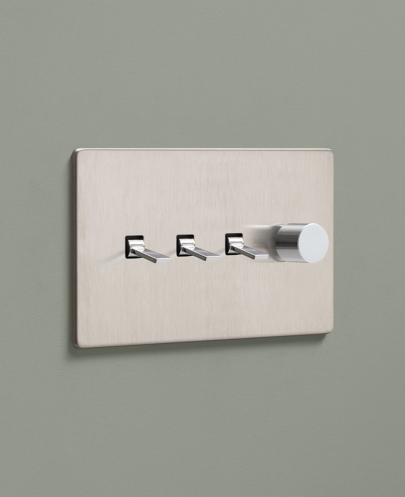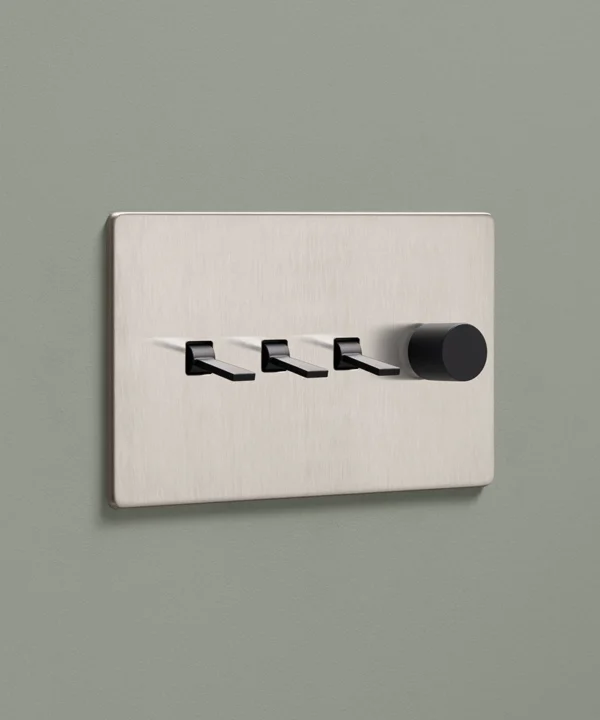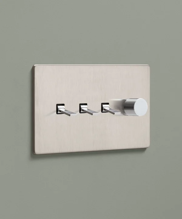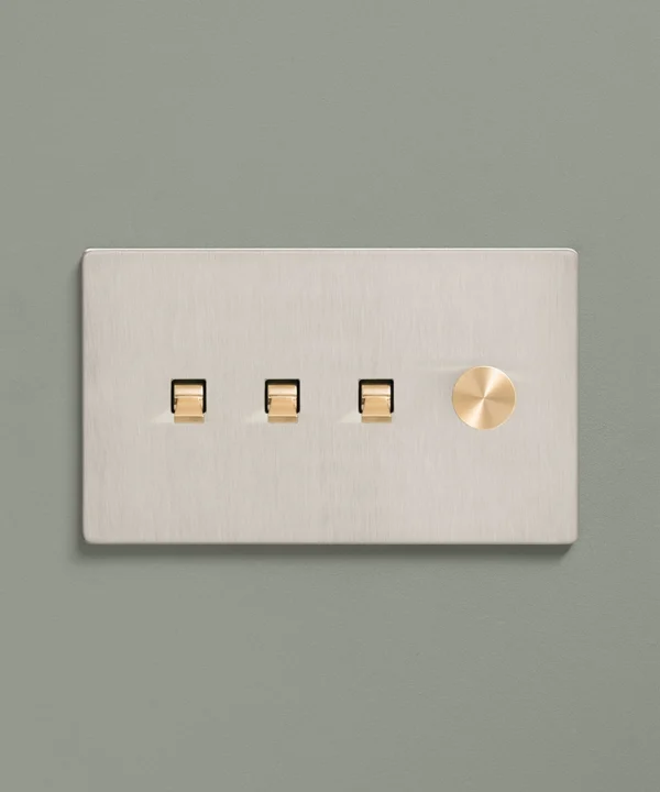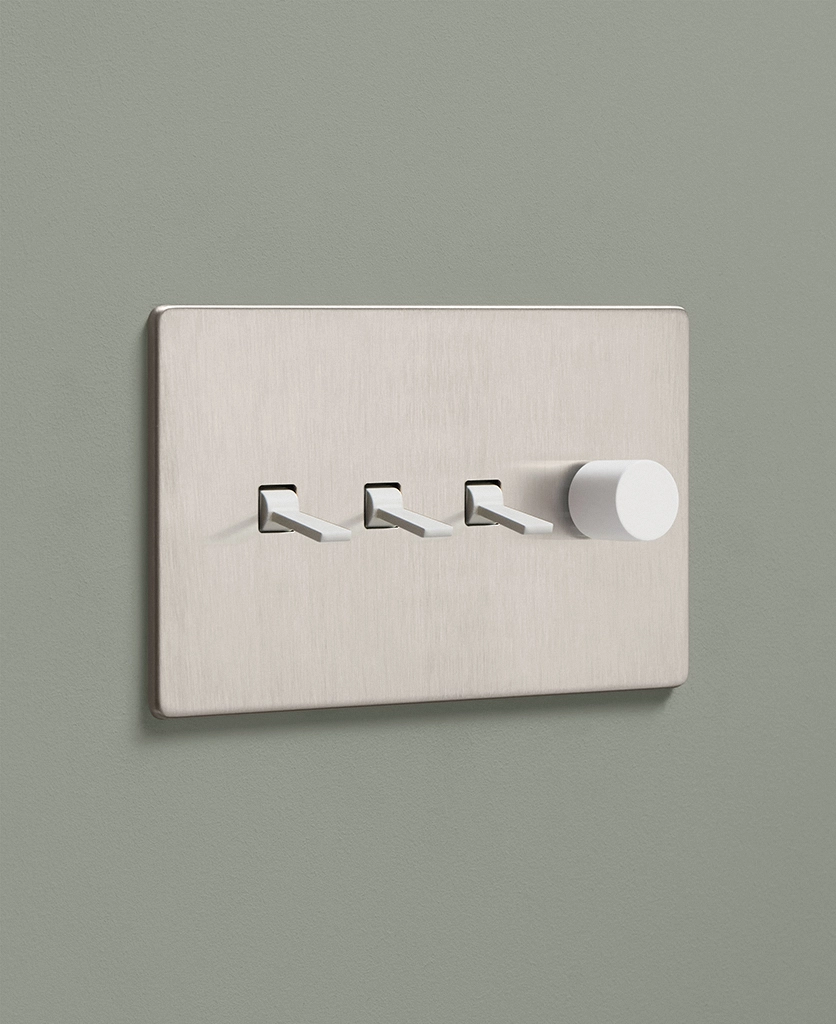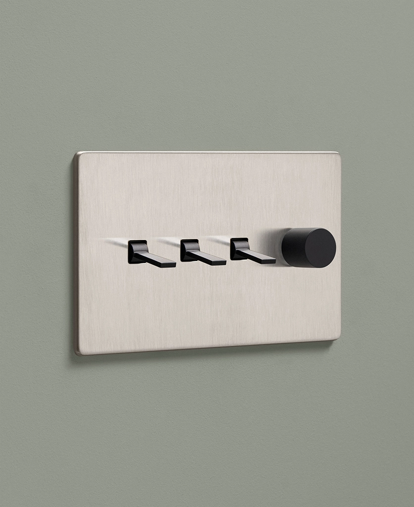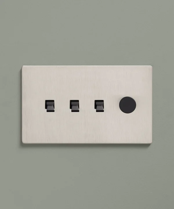 Padding over to the brushed silver light switch on your wood-slatted walls, you feel the toggle between your finger and thumb and flick it upwards, plunging your bedroom into darkness. Twisting the dimmer dial, you watch your bedside lights gently illuminate, casting a warm glow over your space. Controlling all your lights from one switch plate keeps your décor flowing seamlessly without multiple functional fixtures disrupting the peace.