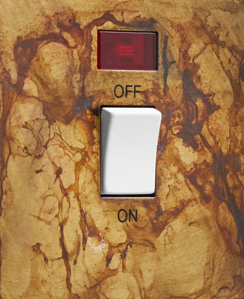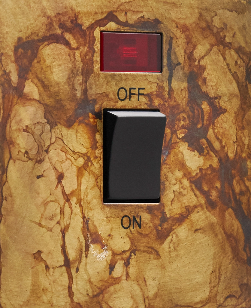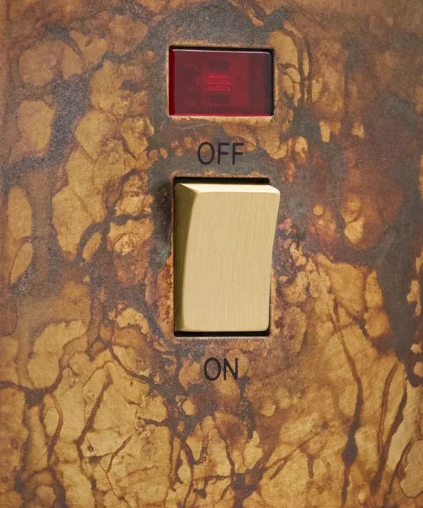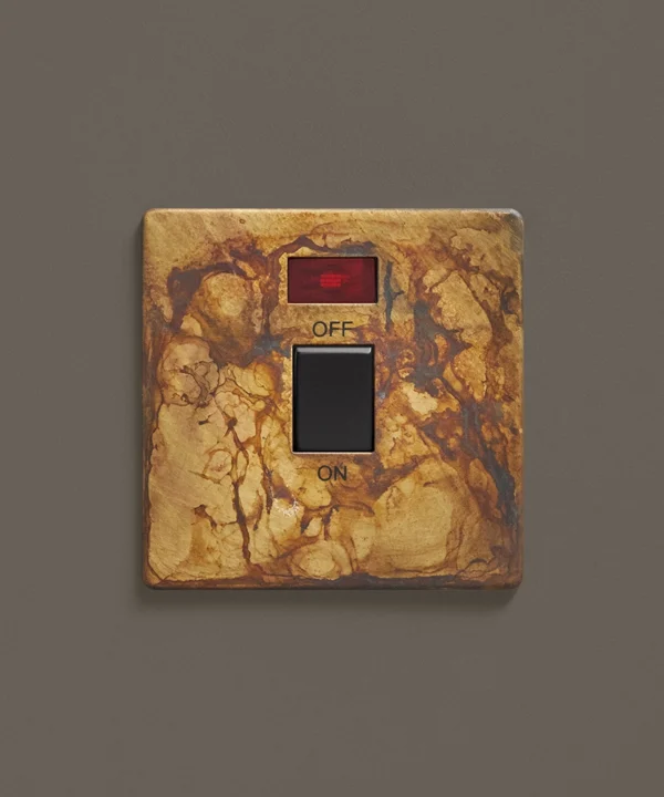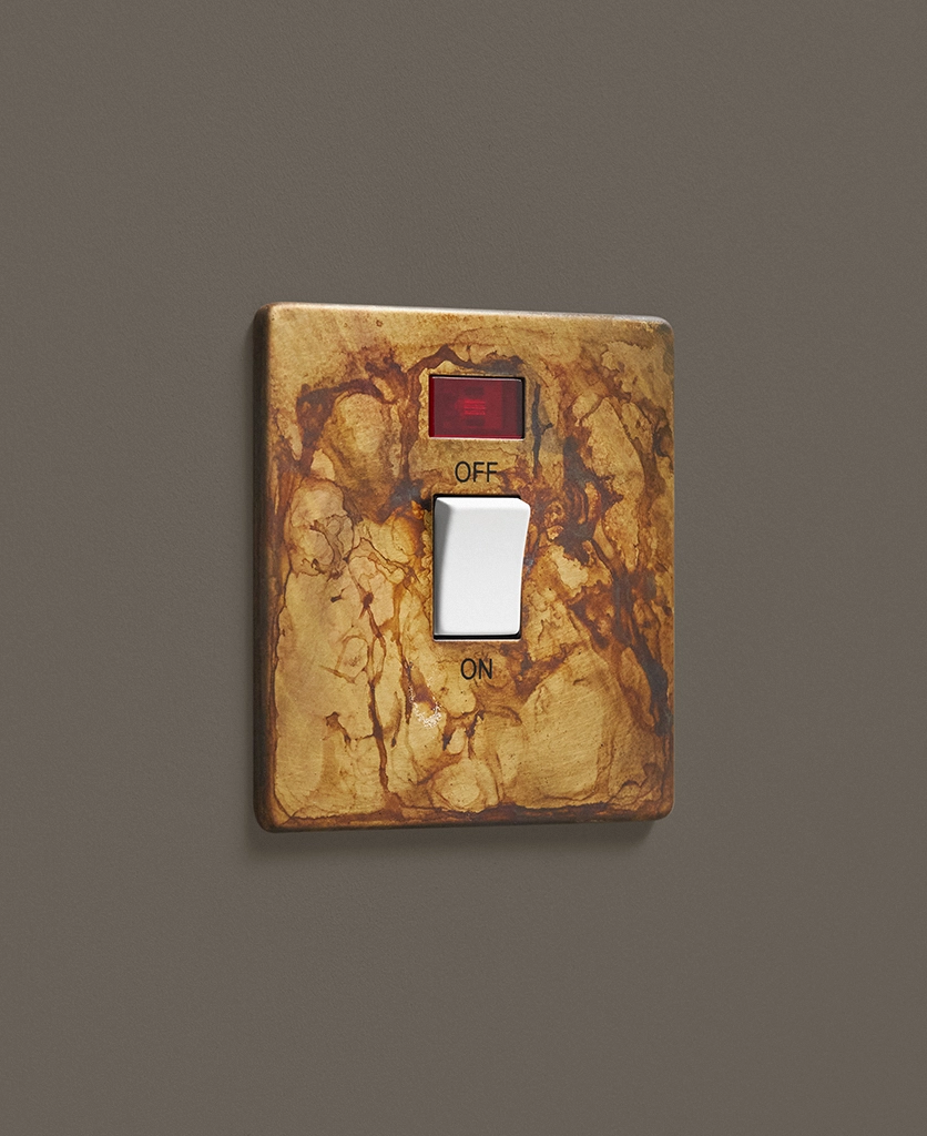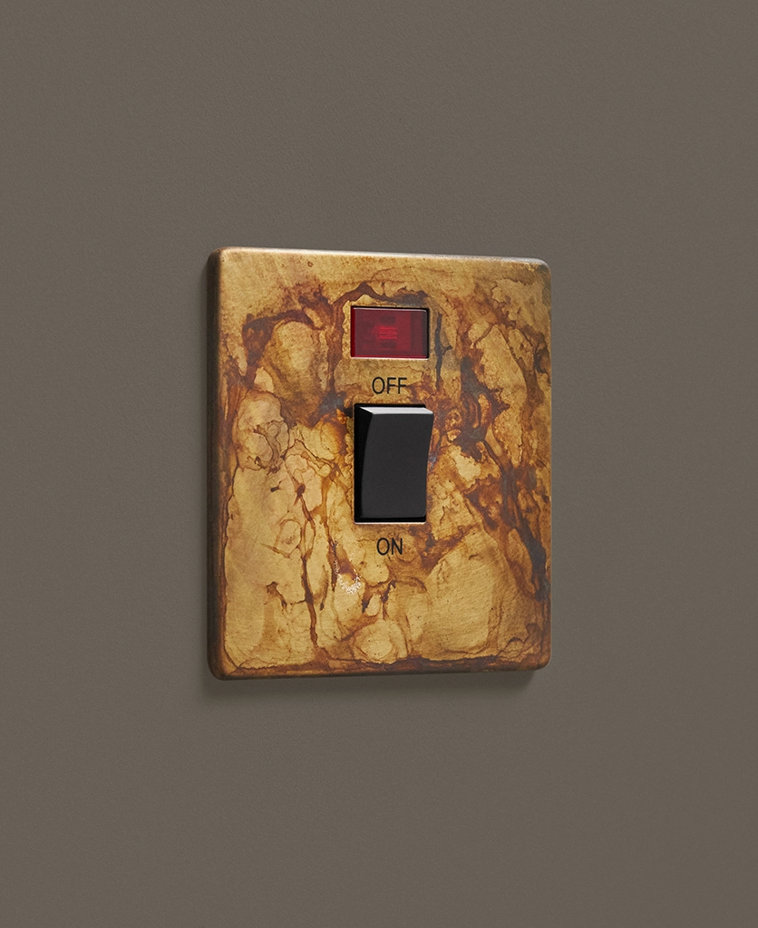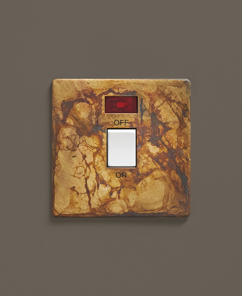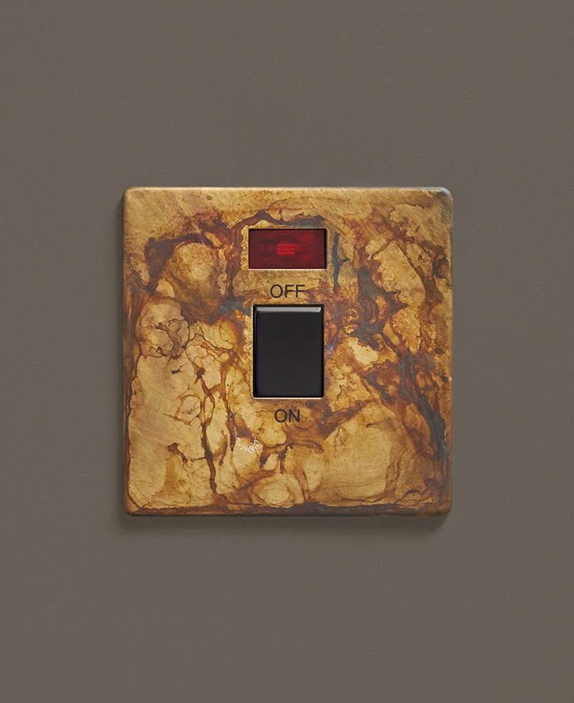 - This finish is made to change and age with wear, making each switch unique, differing from batch to batch. We strongly advise ordering items for the same room together to ensure consistency. If fitted to freshly plastered walls, there is a chance the dampness will encourage the brass finish of this switch to corrode.