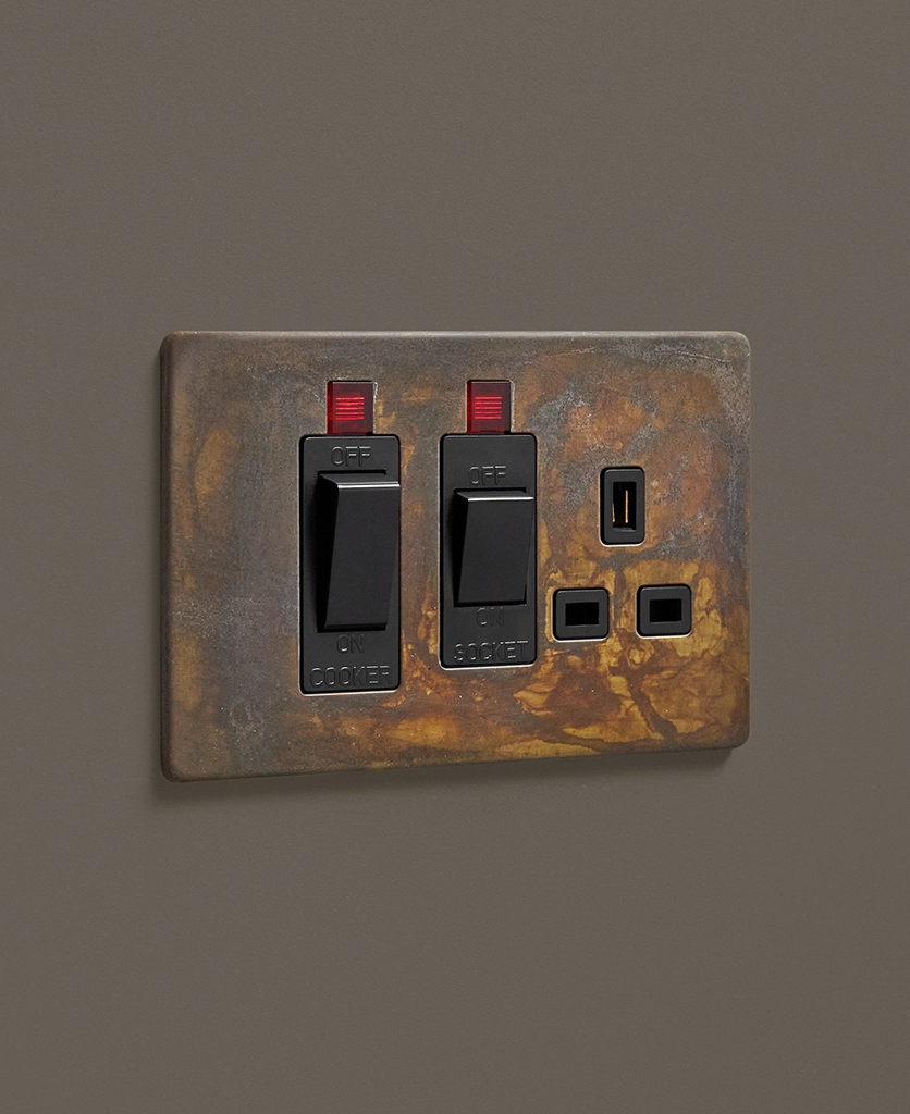 We created this cooker switch & socket combo to coordinate with our exclusively created elemental gold switches and sockets range. A striking collection of designer toggle switches, dimmers and USB sockets that have been created here at D&R to finish off your carefully styled interiors perfectly.