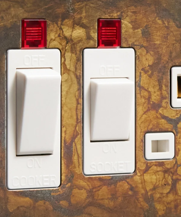 Our elemental gold cooker switch & socket is a must for all kitchens. Not only is it a stunning alternative to ubiquitous white plastic cooker switches, it's also really versatile, and features a handy additional appliance switch.
