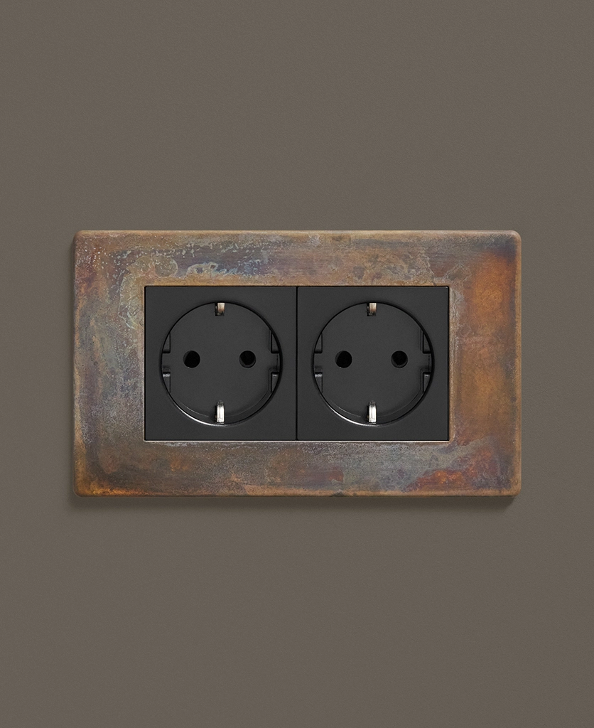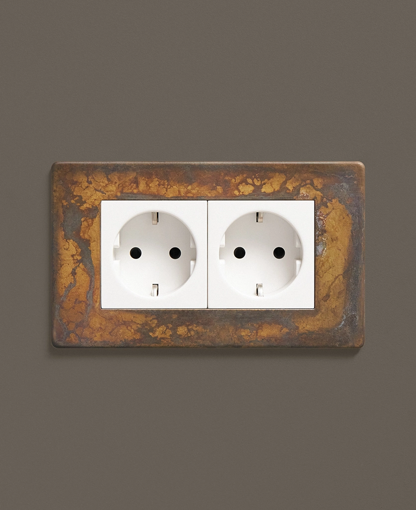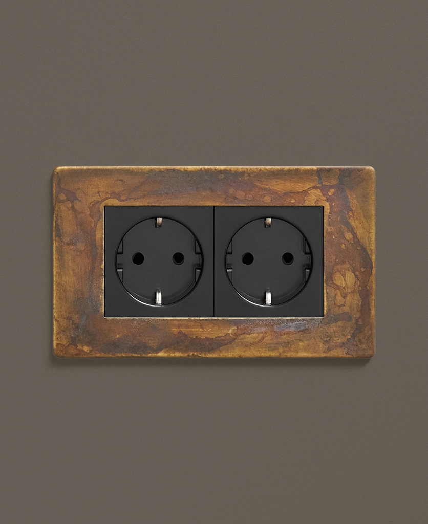 As part of our ever-growing range of switches and sockets, this elemental gold double schuko socket can be coordinated with our exclusive collection of toggles switches, dimmers and appliance switches to add a real designer flair to your interiors.