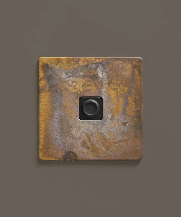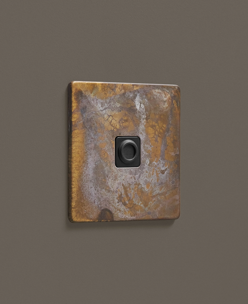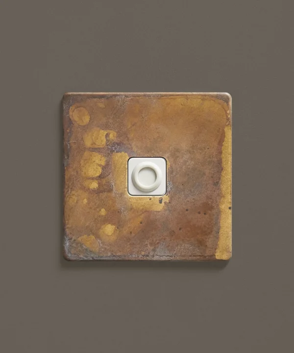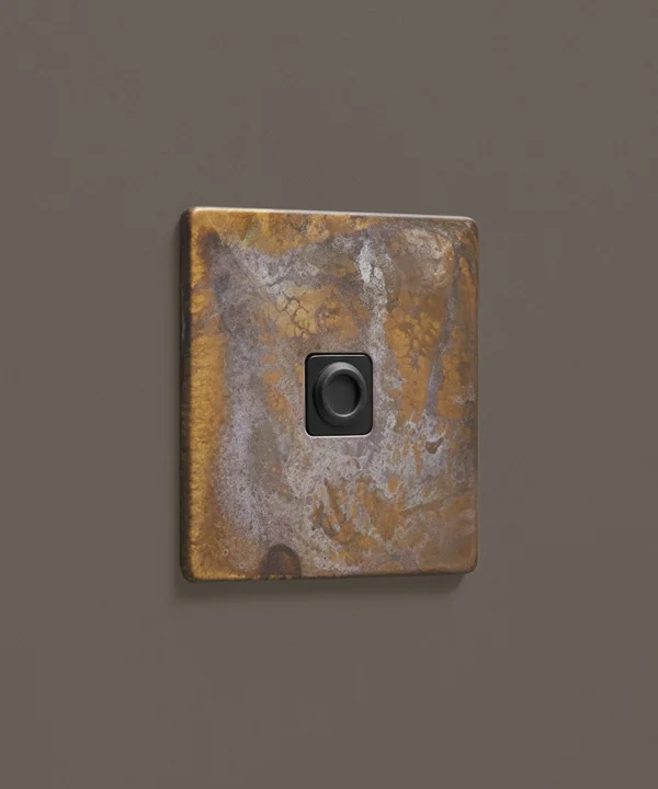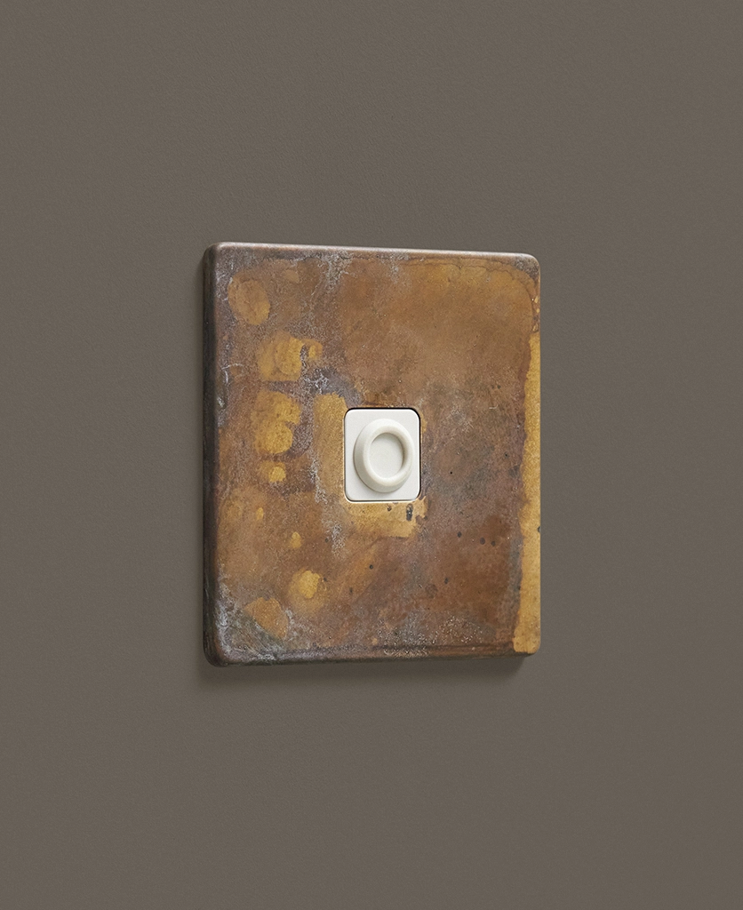 - This finish is made to change and age with wear, making each switch unique, differing from batch to batch. We strongly advise ordering items for the same room together to ensure consistency. If fitted to freshly plastered walls, there is a chance the dampness will encourage the brass finish of this switch to corrode.