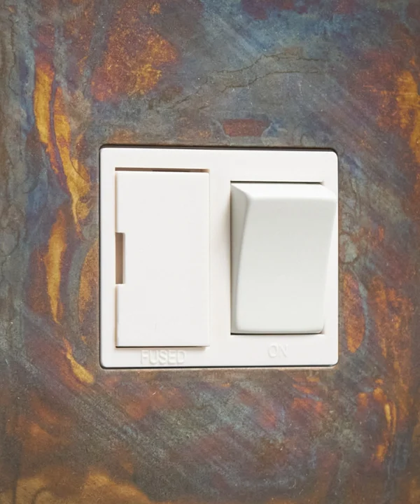 We love this weathered fused spur switch in an industrial interior, where the smoked grey and coffee tones can really stand out. Think moody grey walls, reclaimed wooden worktops and polished concrete flooring. A gorgeous alternative to ubiquitous white plastic switches. To accentuate your industrial style check out our coordinating range of designer elemental gold light switches and sockets. We have everything from double sockets, toggle light switches and dimmers to matching ceiling roses and light bulb holders, to create a matching but not too 'done' look.