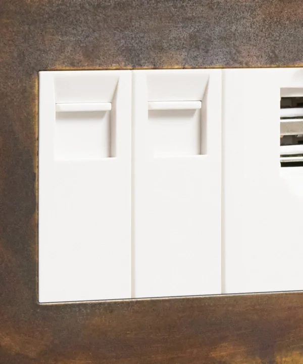 - RJ45 CAT5E or RJ45 CAT6E ethernet insert, USB charging port and master telephone socket