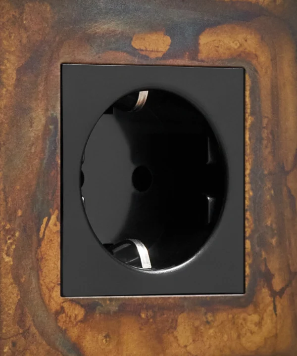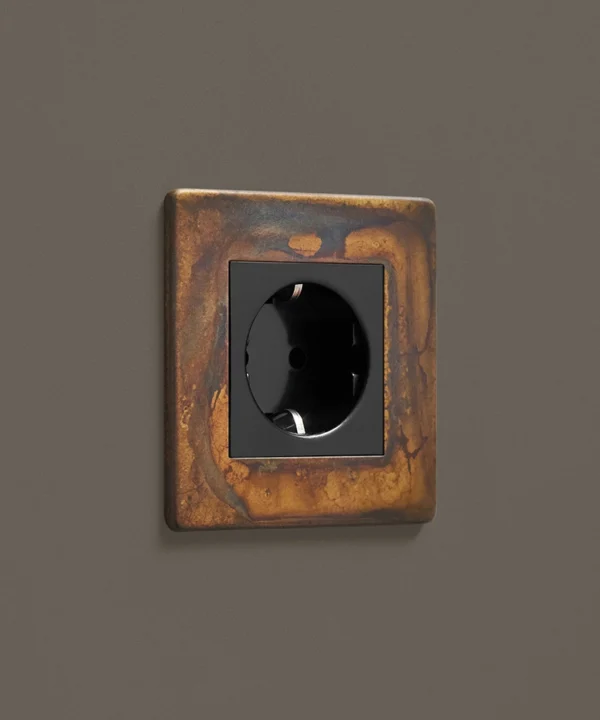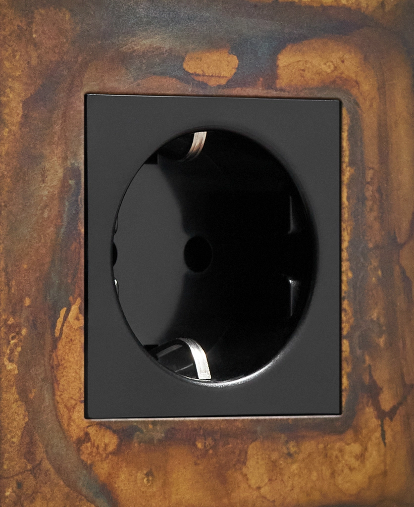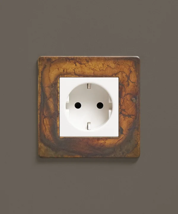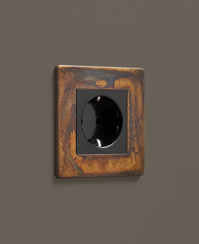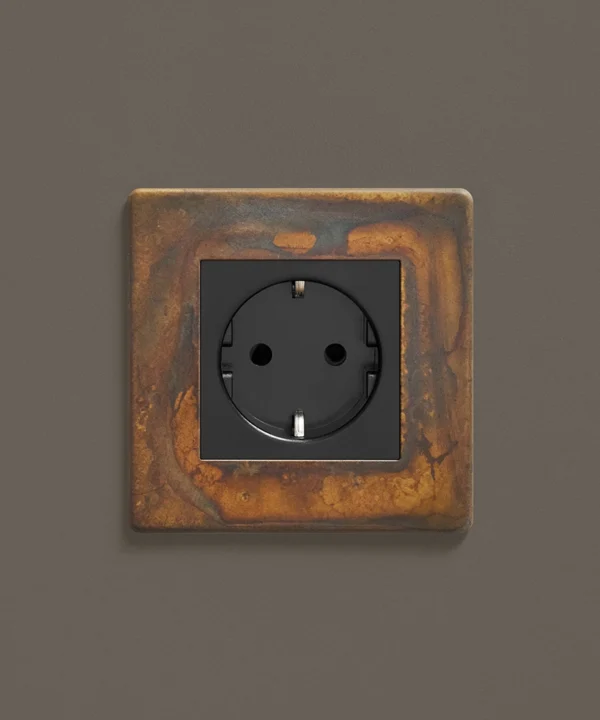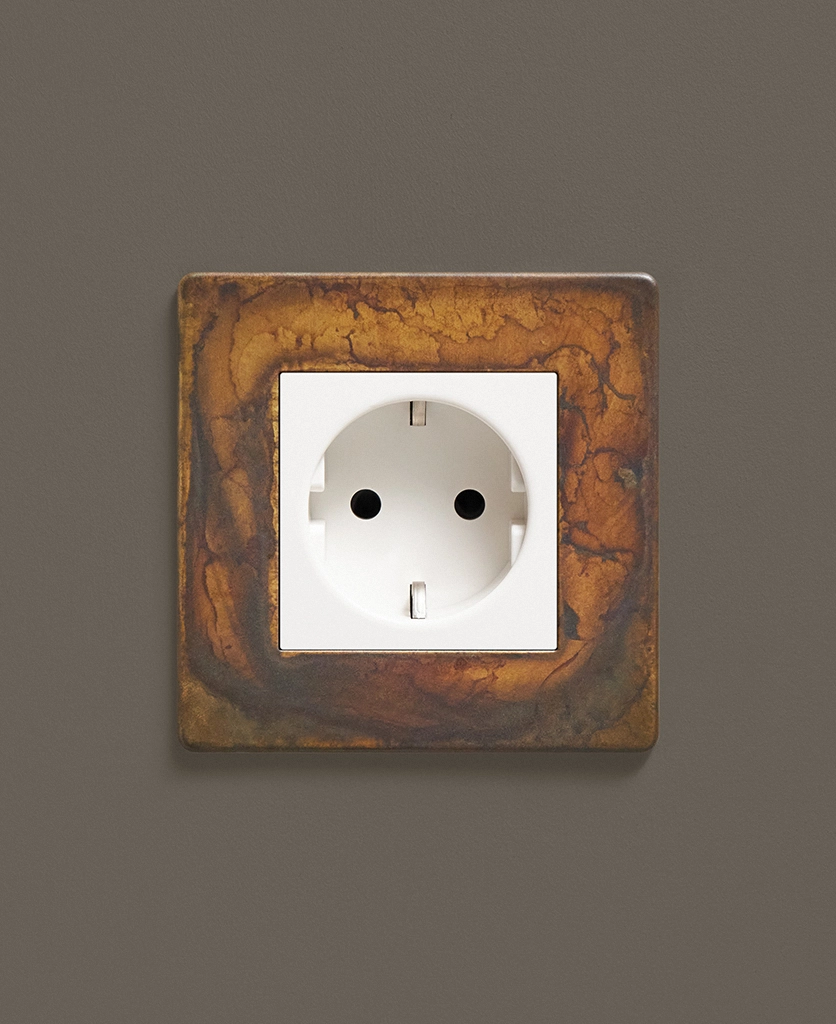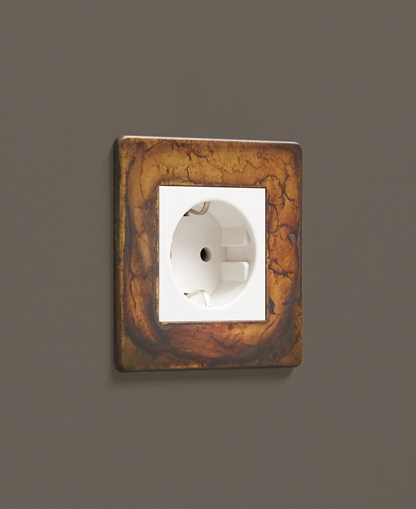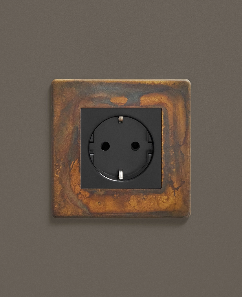 If you're looking to add an industrial edge to your interiors, we've got just the socket for you. Our elemental gold schuko socket is inherently industrial with a touch of decadence. Featuring a gorgeous multi-tonal matt brass plate and contrasting black or white plastic inserts, this socket looks incredible against a palette that accentuates the hues that swirl across the surface. We love dark charcoals, soft greys and matt white.
