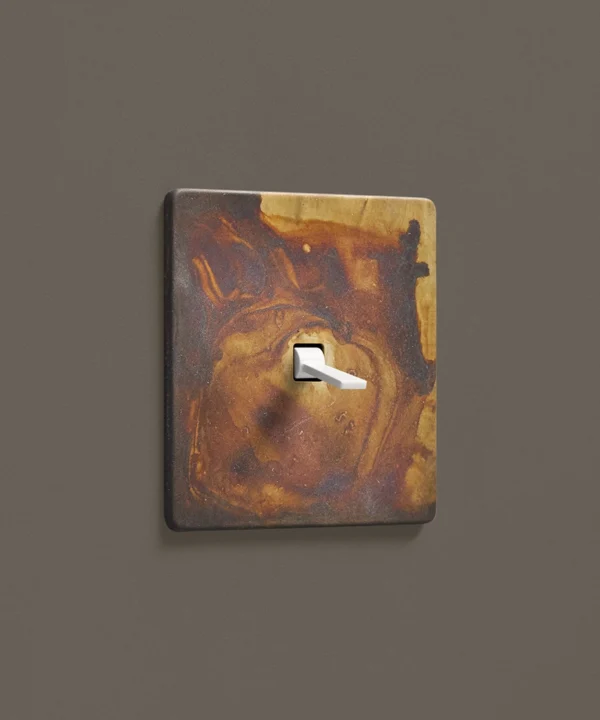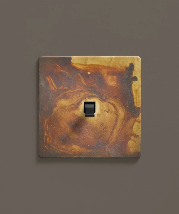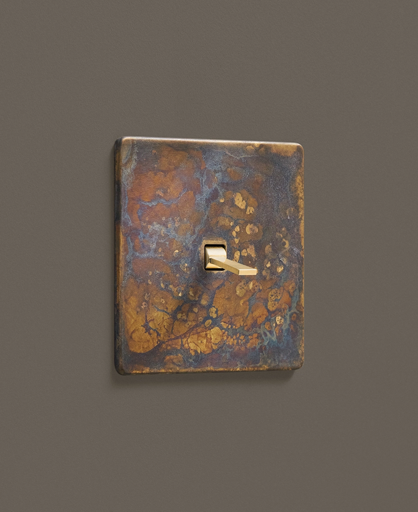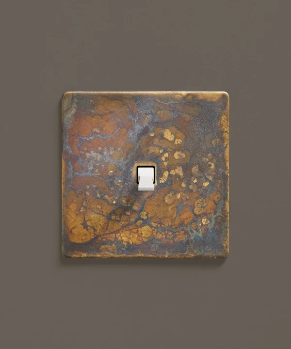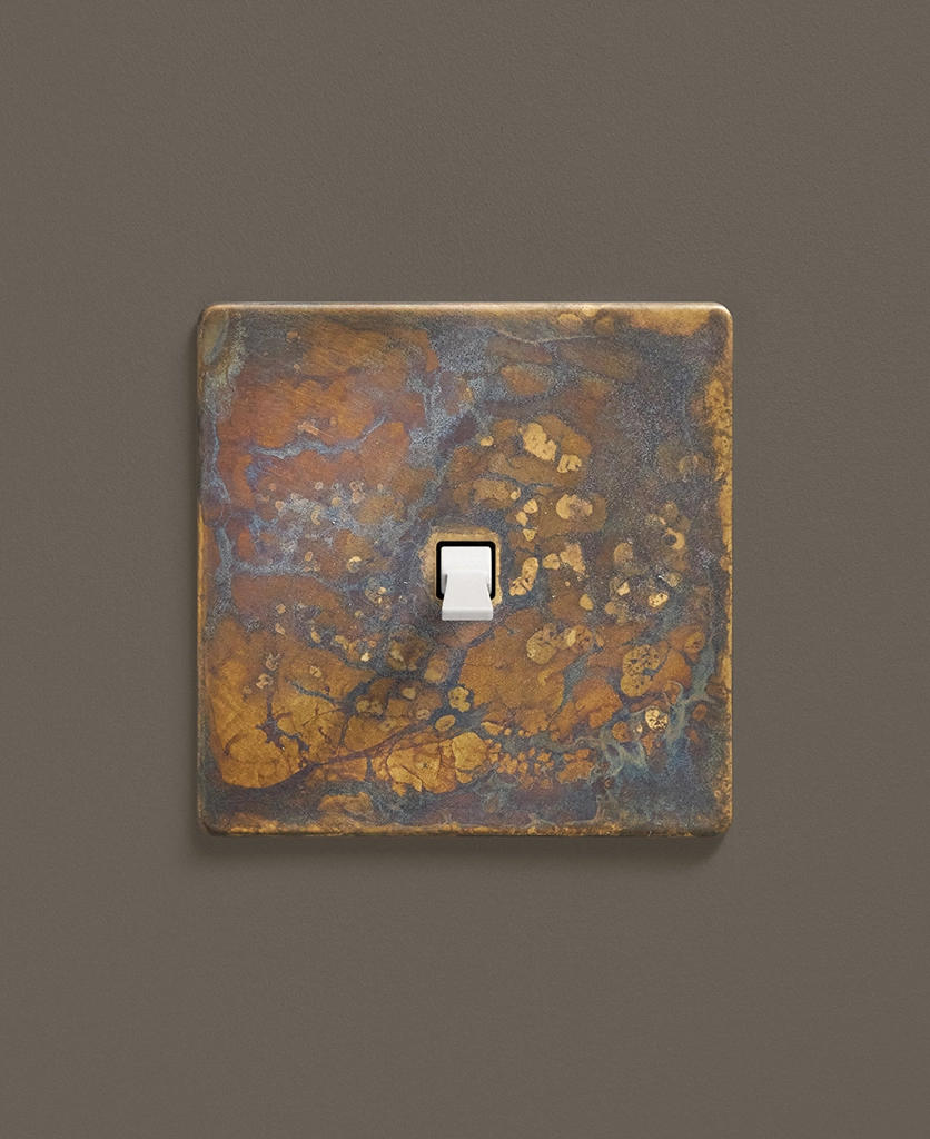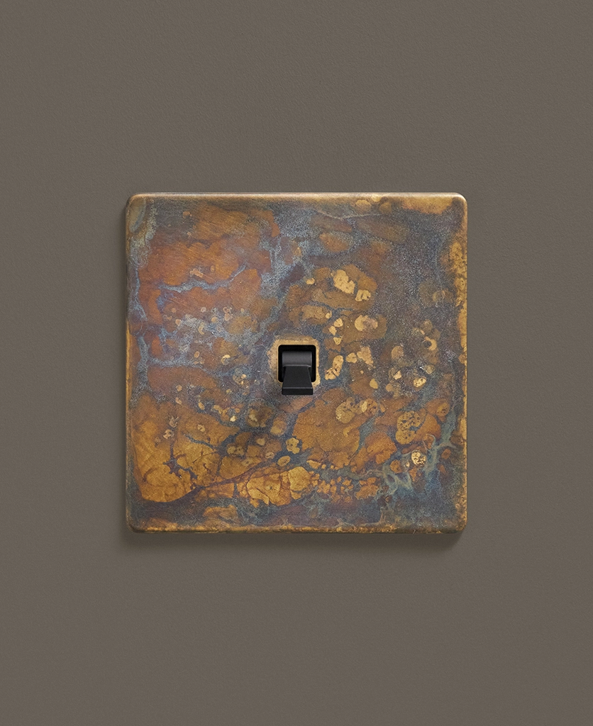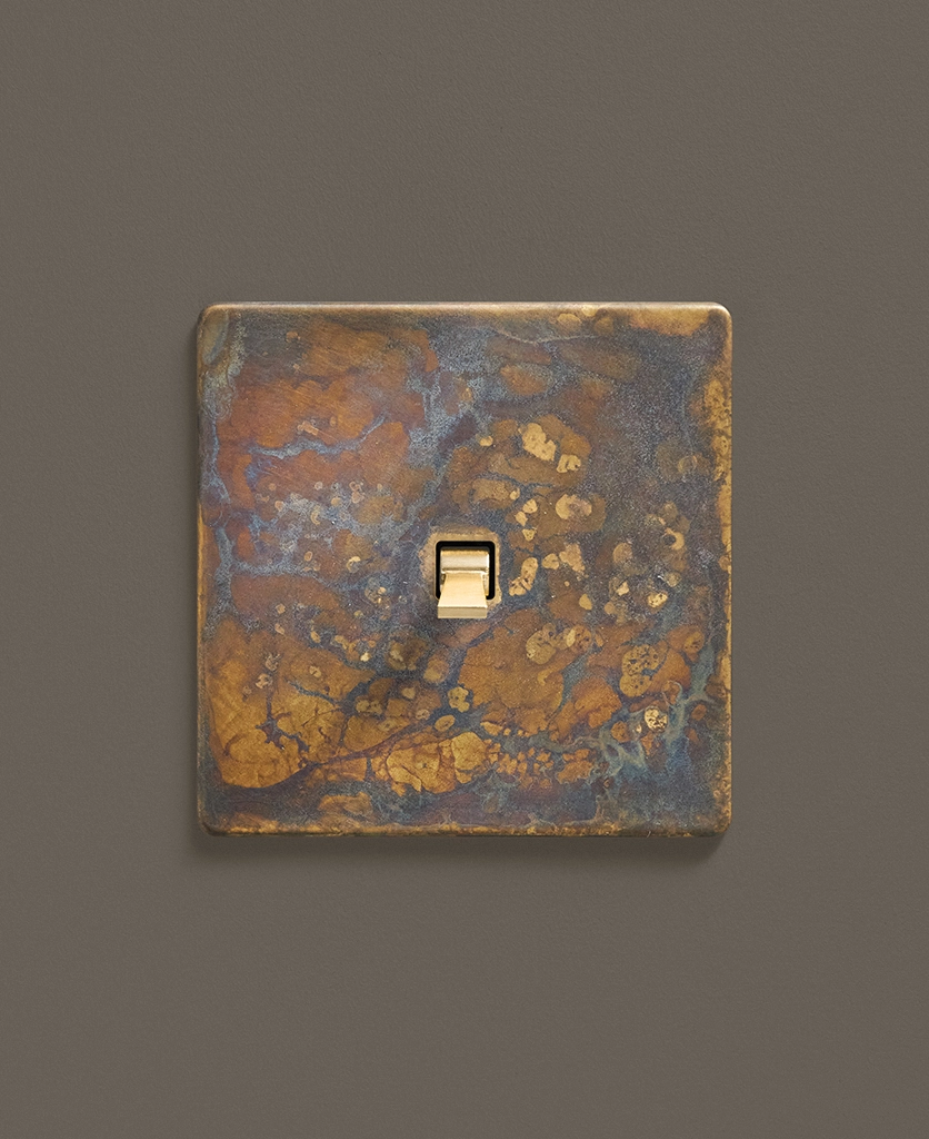 - This finish is made to change and age with wear, making each switch unique, differing from batch to batch. We strongly advise ordering items for the same room together to ensure consistency. If fitted to freshly plastered walls, there is a chance the dampness will encourage the brass finish of this switch to corrode.