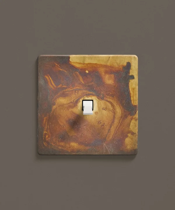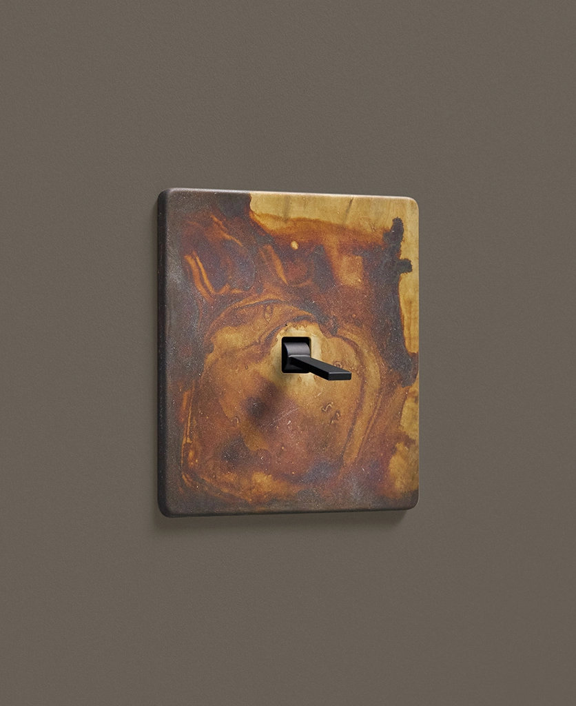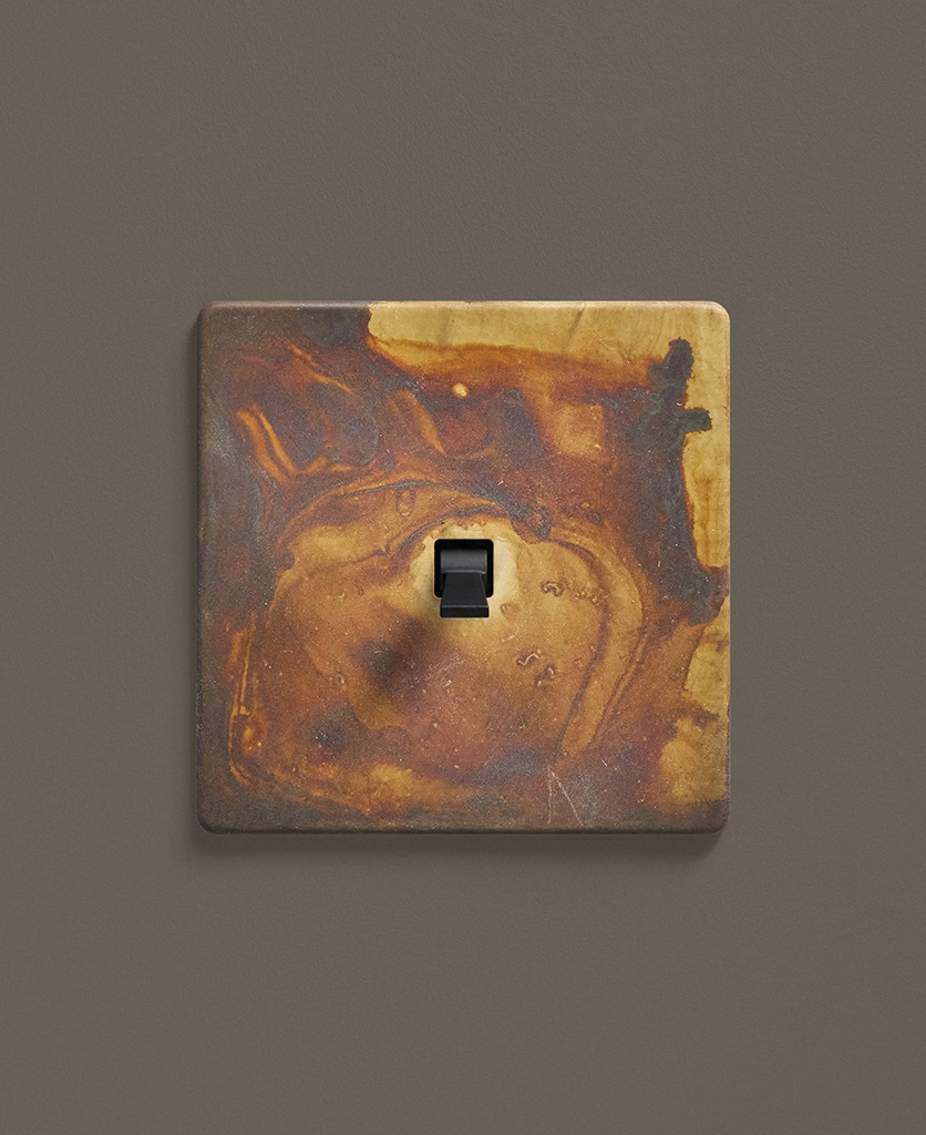 Displaying your new deep red Eucalyptus stems in pride of place in a basket, you turn on the washing machine, hoping to get some clothes on the line before the sun sets. Feeling productive and ready for a chill on the sofa, you leave the room, unable to resist flicking the elemental gold toggle switch on the wall as you breeze past, delighting in the satisfying click that echoes through the space as you turn it on and off again.