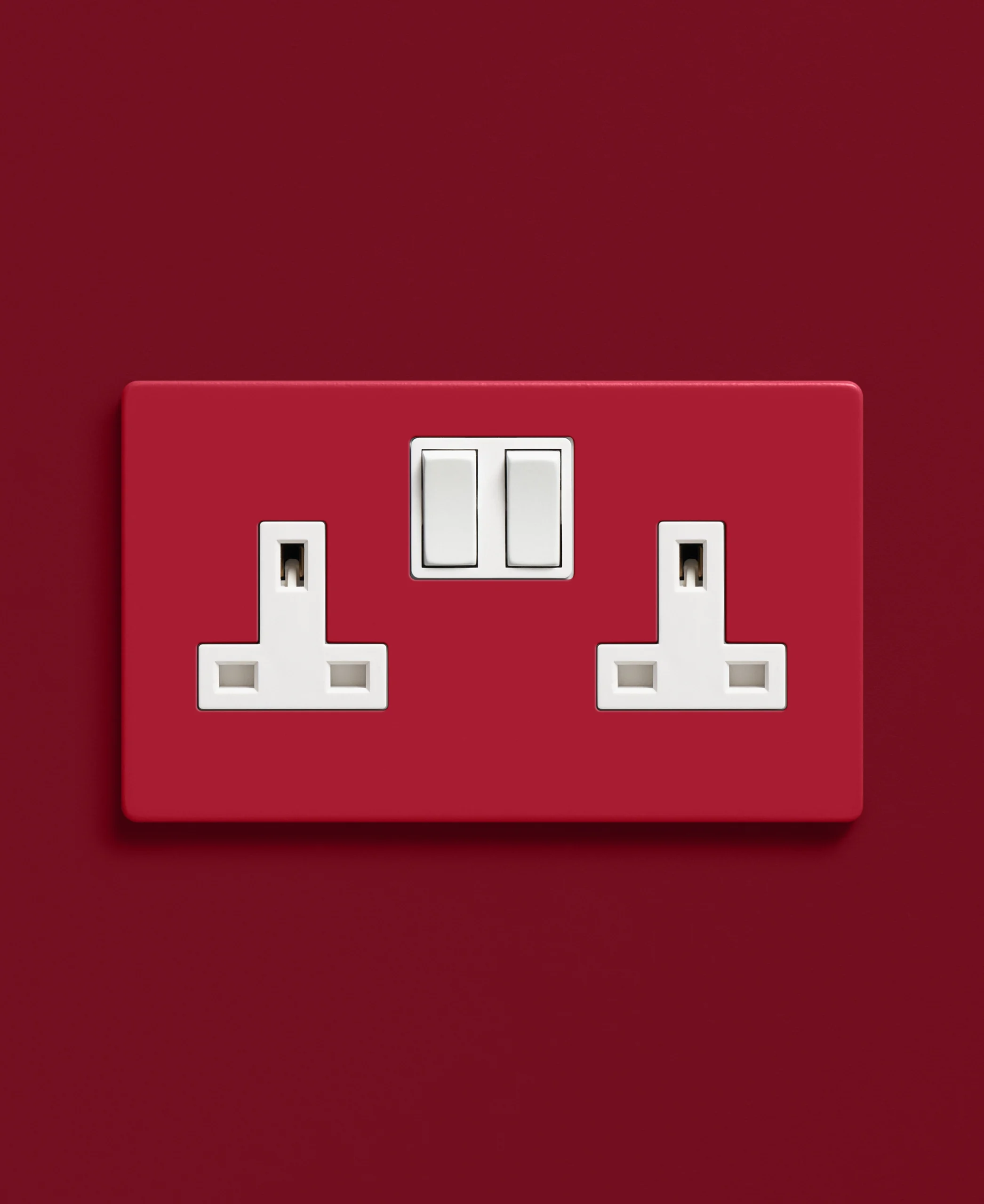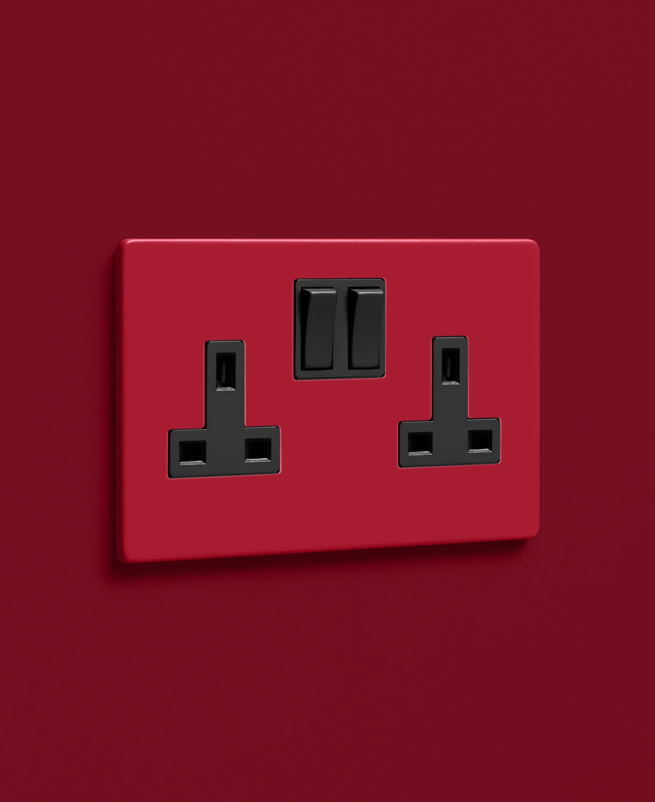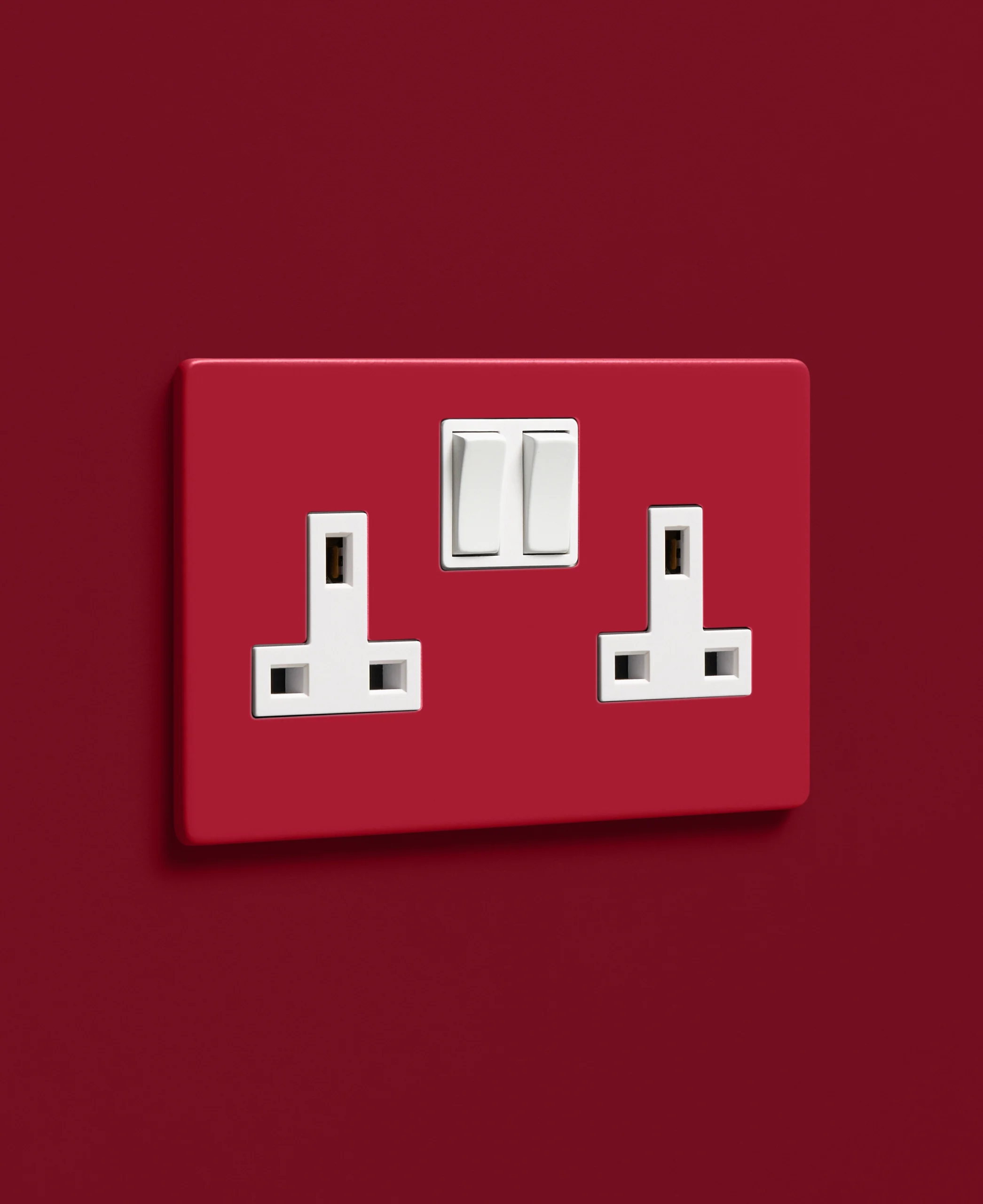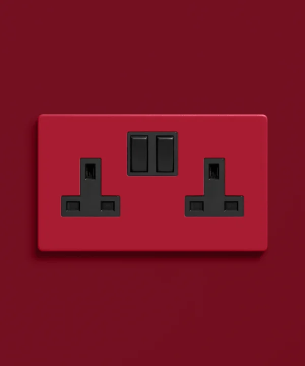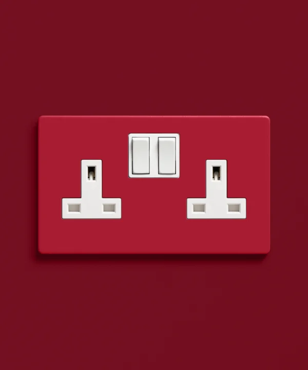 Pausing to plug in your lamp, you notice how perfectly this red socket anchors your room. It’s understated yet distinctive—proof that even the most functional details can feel crafted and considered.
