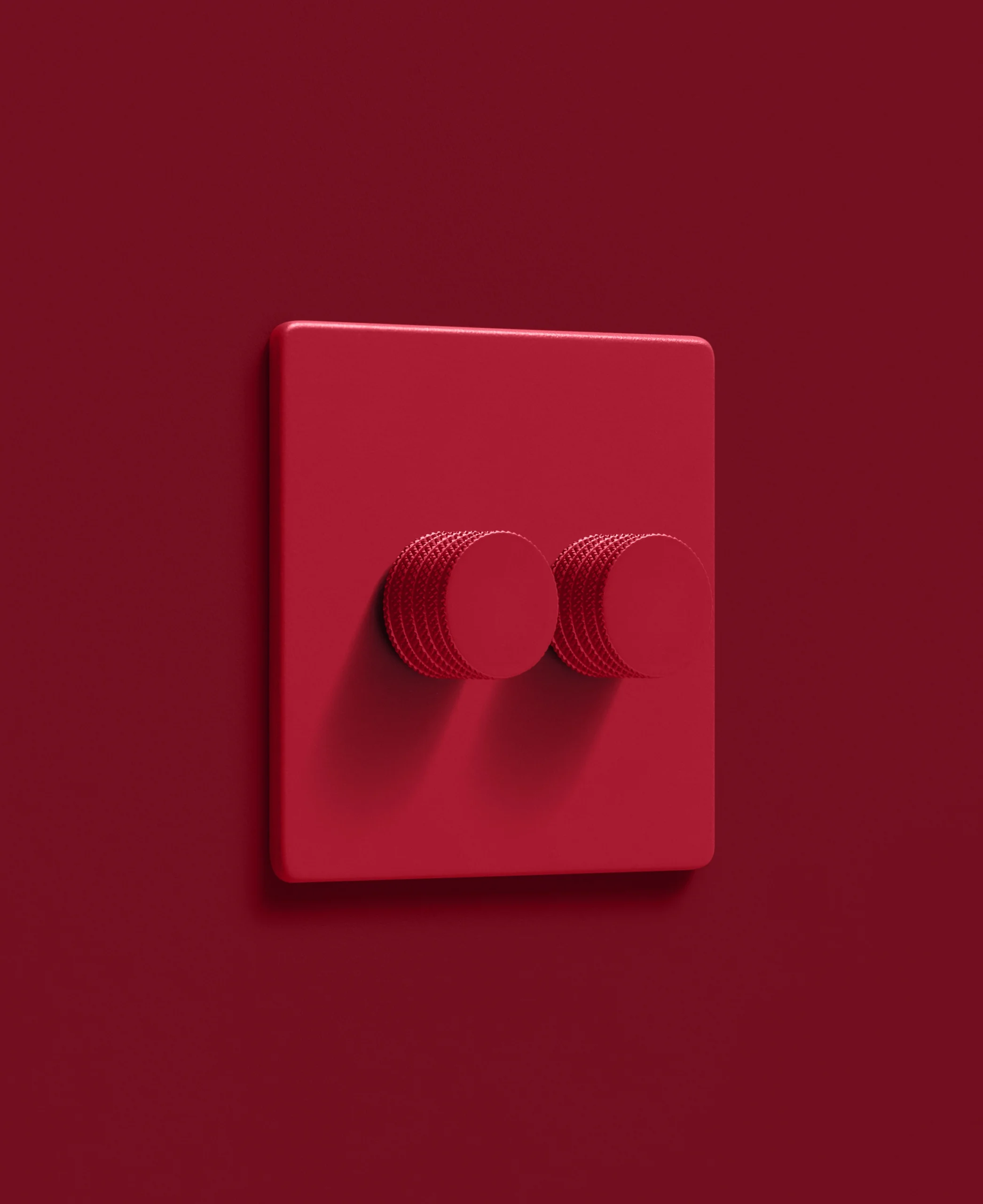 Adjusting both dimmers from your phone, you curate the light as if conducting an orchestra—soft glows for evenings, bright focus for mornings. The Sweet Cherry dimmer’s spirited red finish brings a joyful twist to modern living.