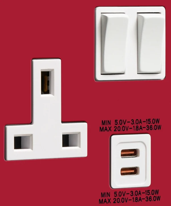 Beautifully designed with a metal plate and smooth, powder-coated finish. Features twin USB-C ports for modern convenience. Indoor use only.