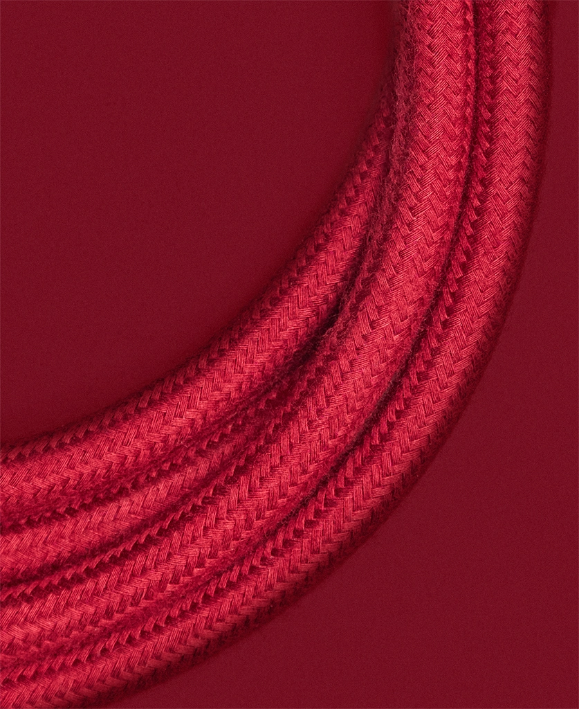 The design detail A braided Sweet Cherry red cable paired with a dark socket block creates contrast and definition. The design feels purposeful and contemporary, turning a functional object into a subtle statement.