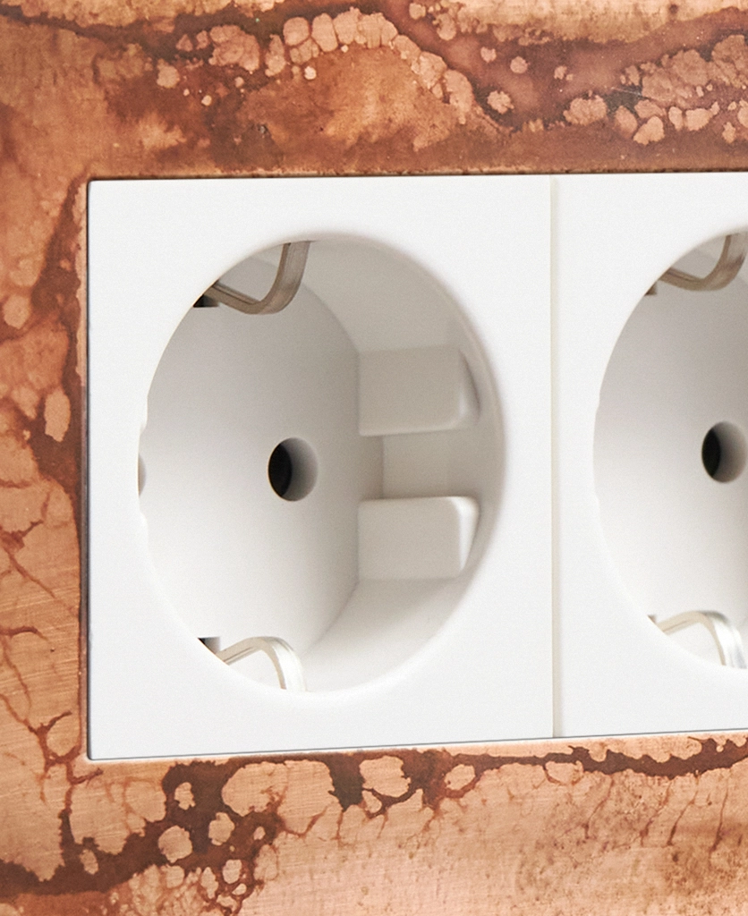 Our oxide copper schuko socket makes a stunning accompaniment to an industrially styled interior. Featuring a distressed copper plate with a choice of either white or black plastic insert, this minimalist socket looks fabulous alongside our exclusively created switches and sockets range.