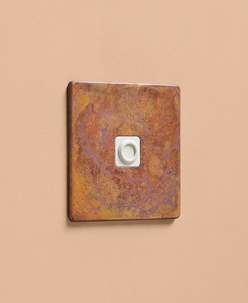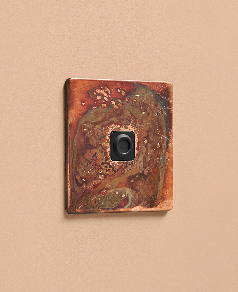 - Our oxide copper finish is made to change and age with wear, making each switch unique, differing from batch to batch. We strongly advise ordering items for the same room together to ensure consistency. If fitted to freshly plastered walls, there is a chance the dampness will encourage the finish of this switch to corrode.