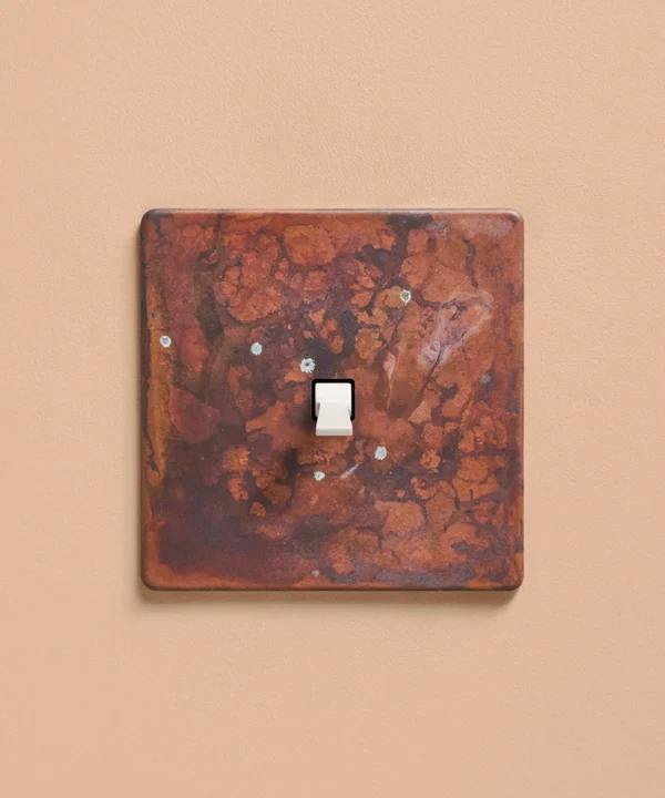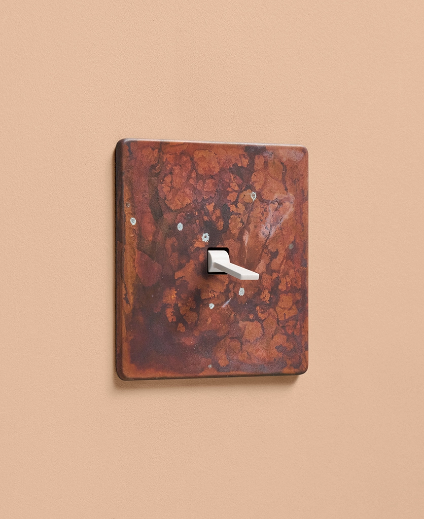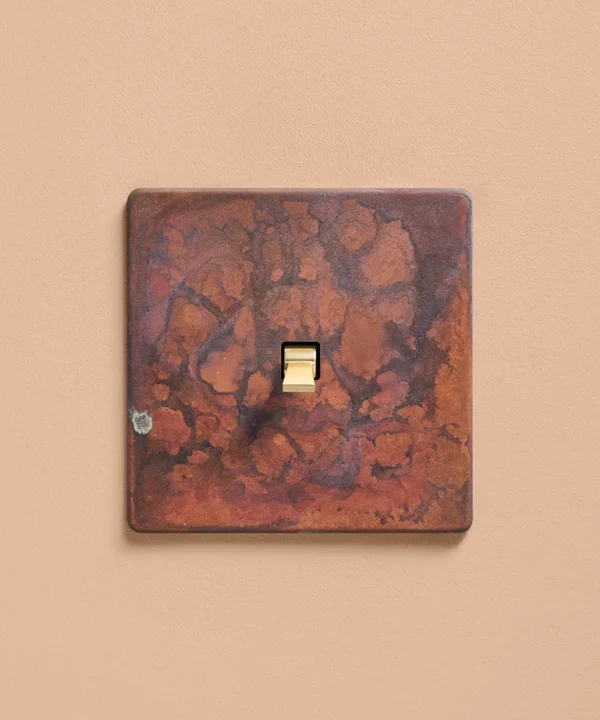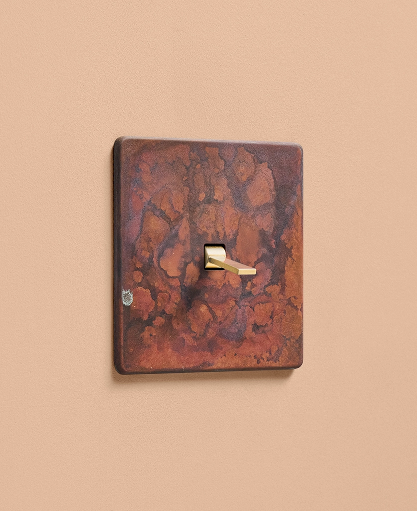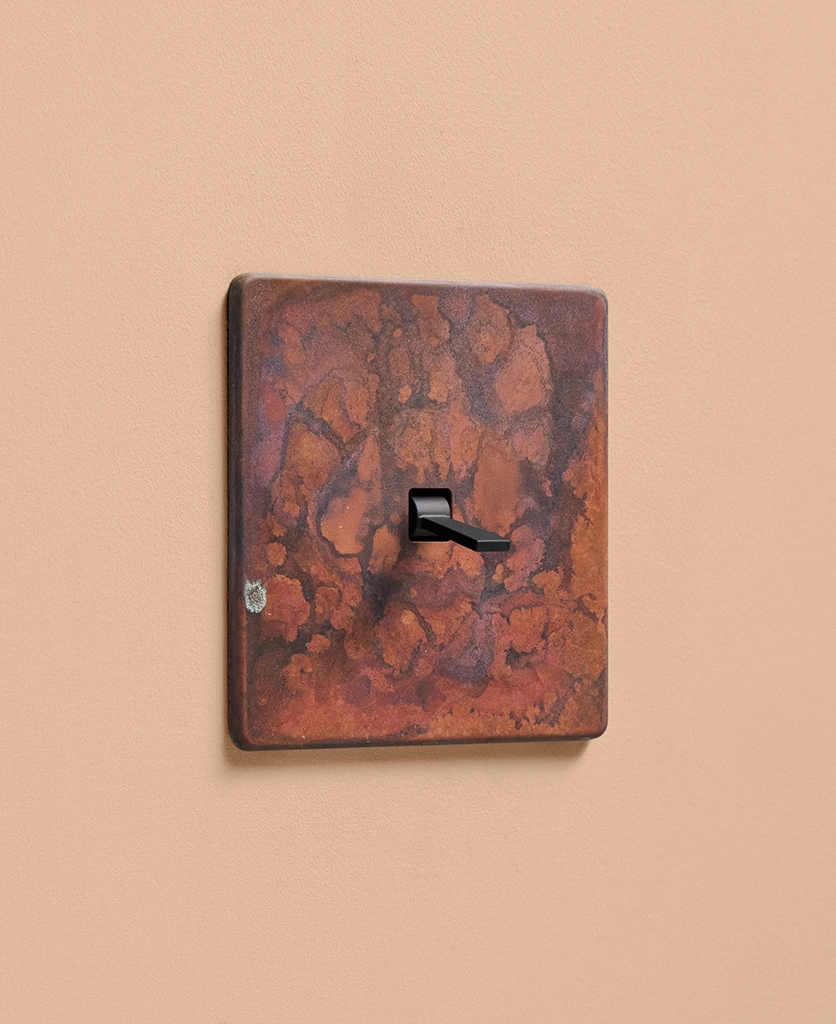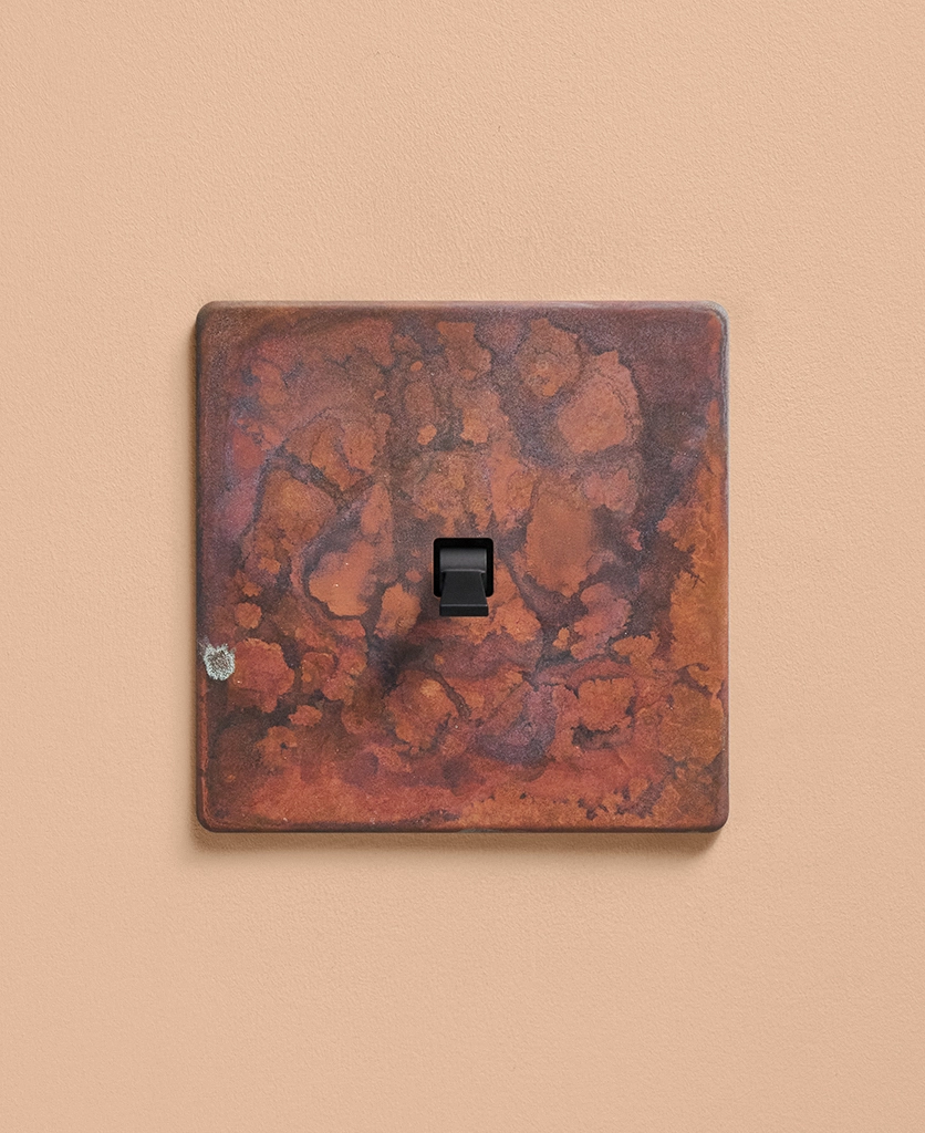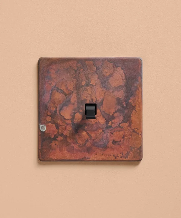 - Our oxide copper finish is made to change and age with wear, making each switch unique, differing from batch to batch. We strongly advise ordering items for the same room together to ensure consistency. If fitted to freshly plastered walls, there is a chance the dampness will encourage the finish of this switch to corrode.