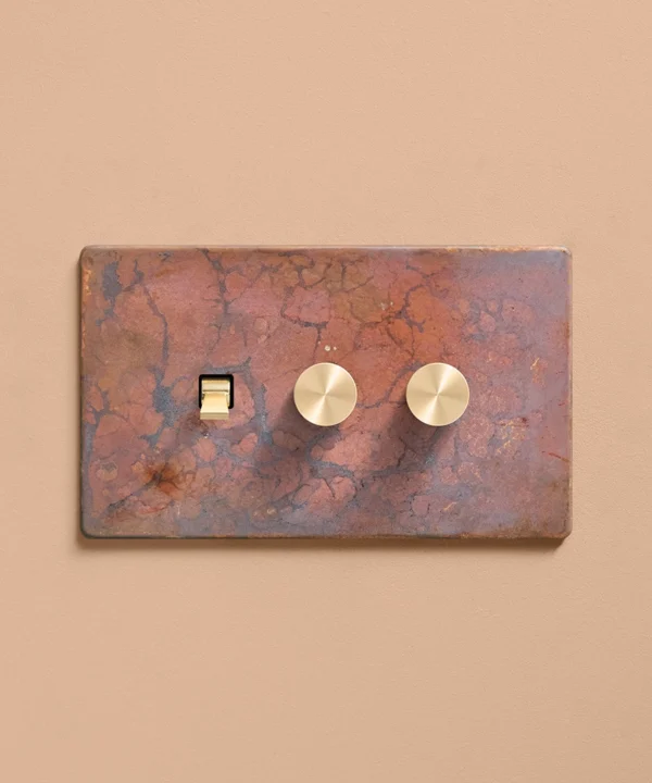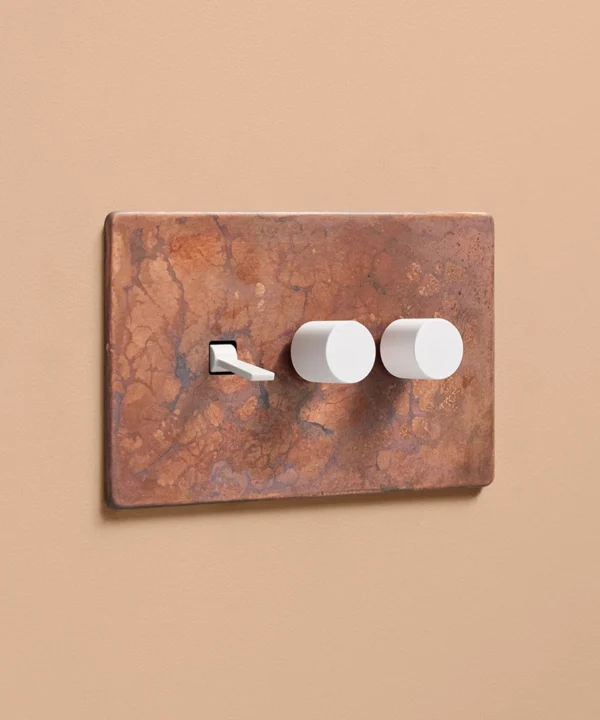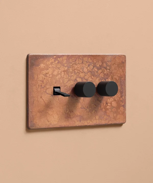 Home / Shop / Light Switches / Combination Switches / Oxide Copper Triple Combo Switch (1 Toggle, 2 Dimmer)
