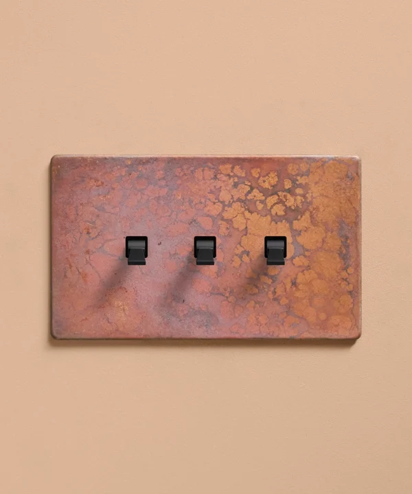 - Our oxide copper finish is made to change and age with wear, making each switch unique, differing from batch to batch. We strongly advise ordering items for the same room together to ensure consistency. If fitted to freshly plastered walls, there is a chance the dampness will encourage the finish of this switch to corrode.