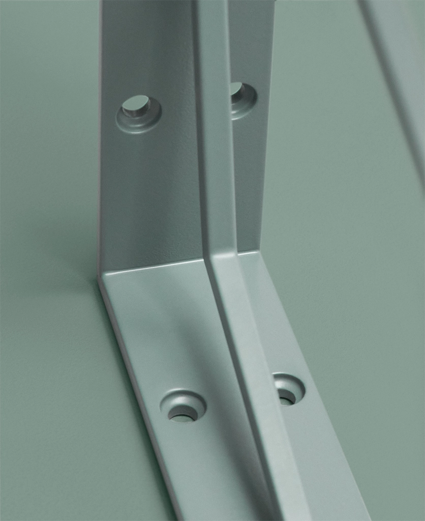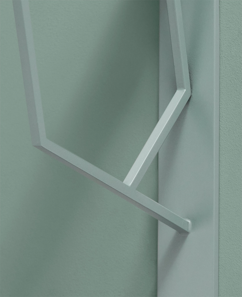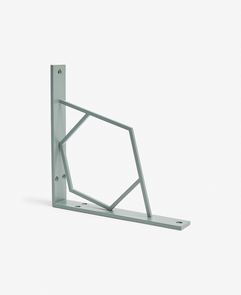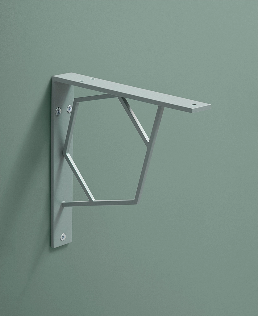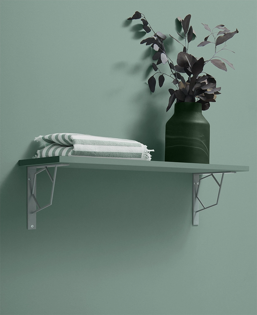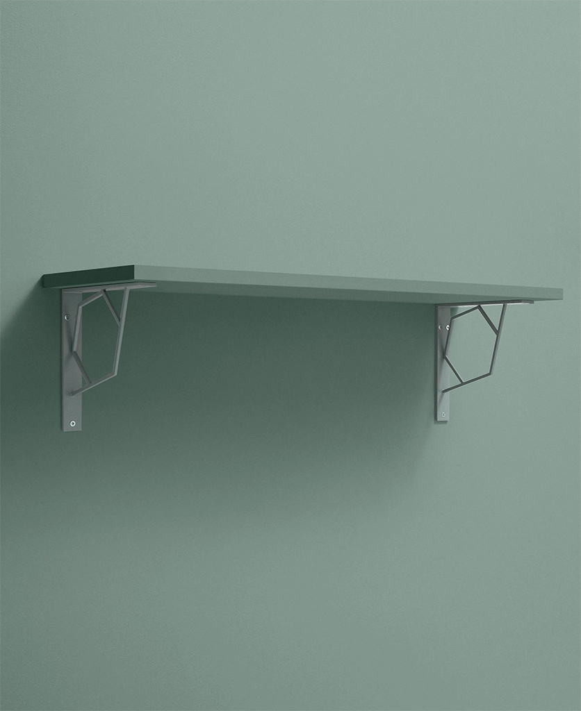 Lining your open shelves with herb jars and trailing ivy, your hand lingers on the stylish sage green angles of the bracket beneath. Cool and understated, it conjures the calm of botanical spaces—a greenhouse moment in your everyday kitchen.