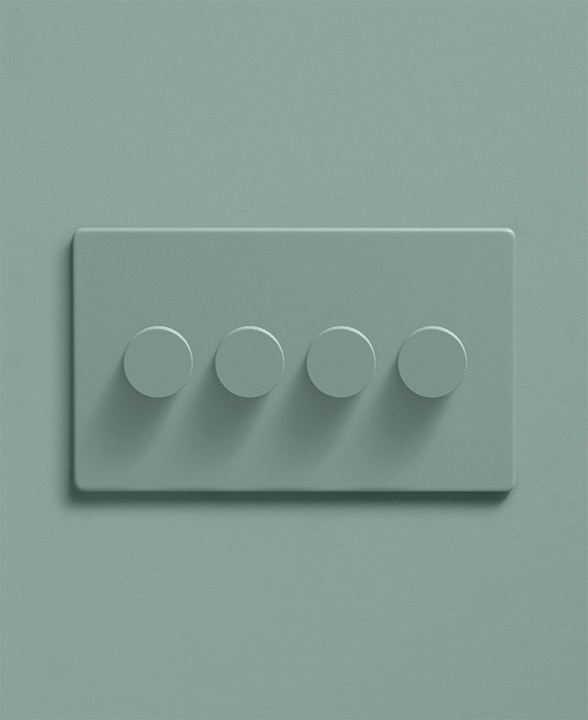 This dimmer is suited to expansive layouts and multifunctional rooms where flexibility is essential. Its soft, muted green tone complements both traditional and modern interiors.