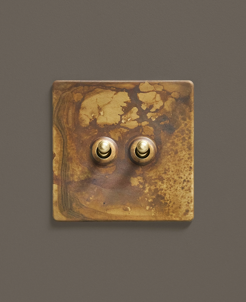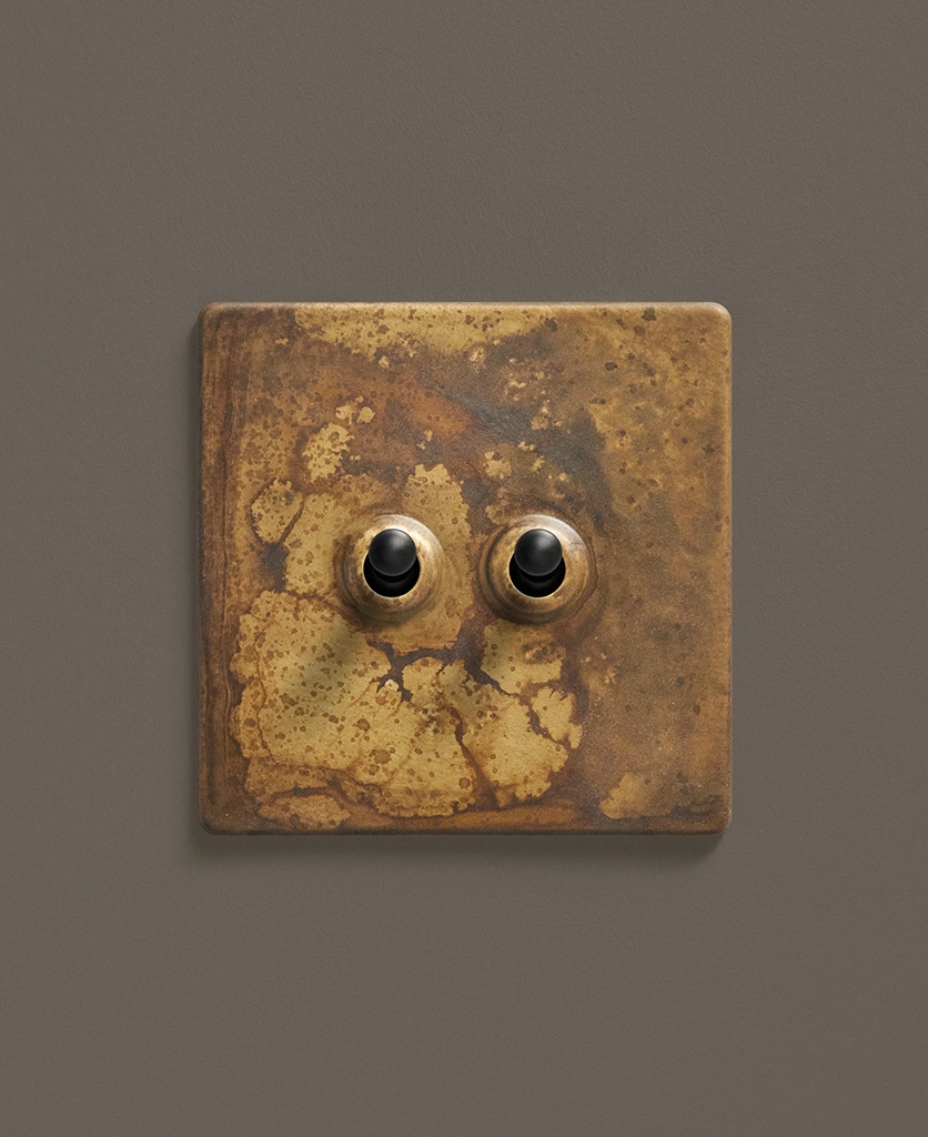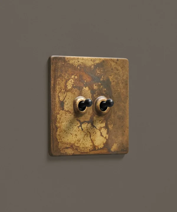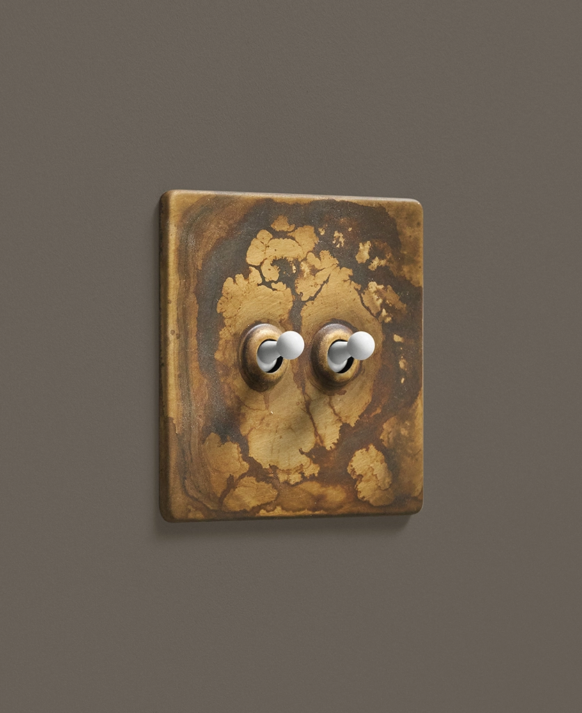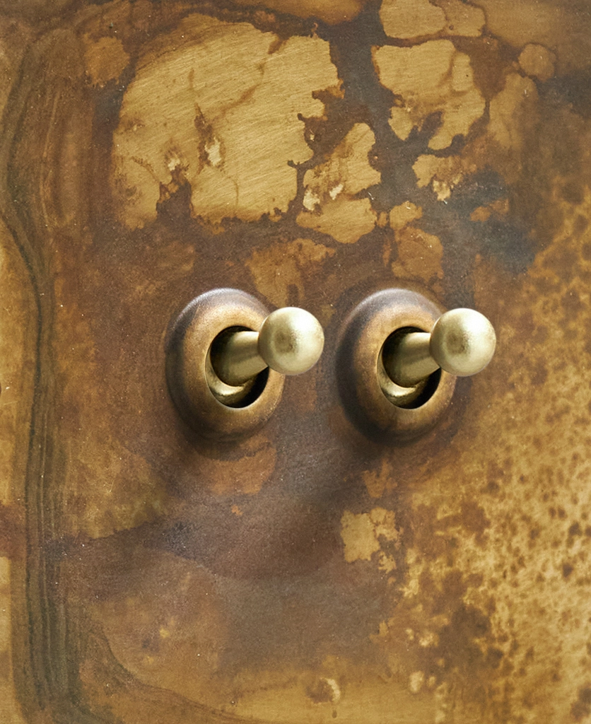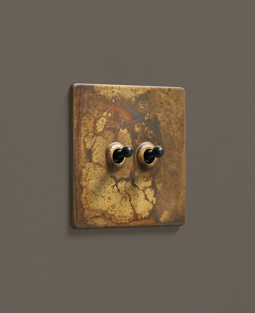 - This finish is made to change and age with wear, making each switch unique, differing from batch to batch. We strongly advise ordering items for the same room together to ensure consistency. If fitted to freshly plastered walls, there is a chance the dampness will encourage the brass finish of this switch to corrode.