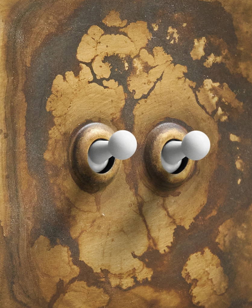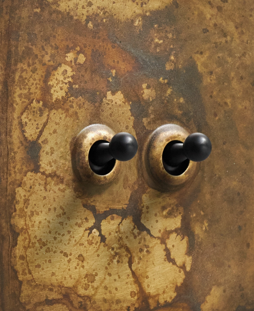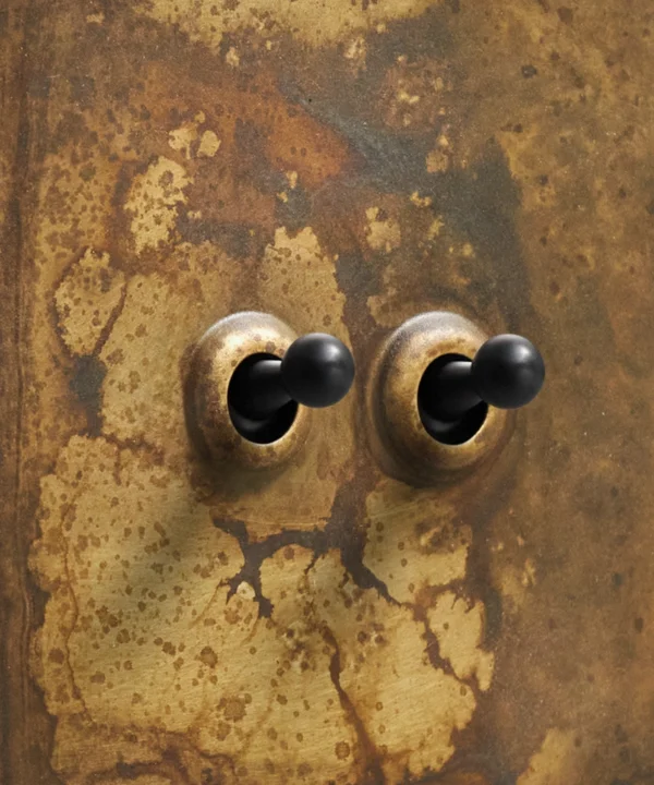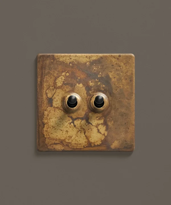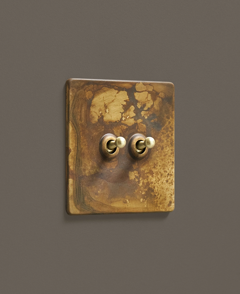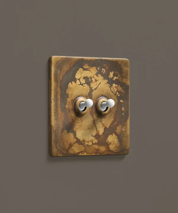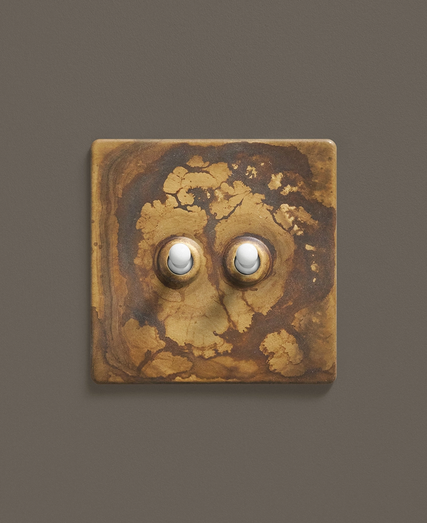 - This finish is made to change and age with wear, making each switch unique, differing from batch to batch. We strongly advise ordering items for the same room together to ensure consistency. If fitted to freshly plastered walls, there is a chance the dampness will encourage the brass finish of this switch to corrode.