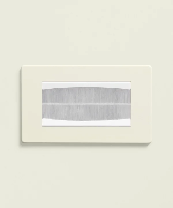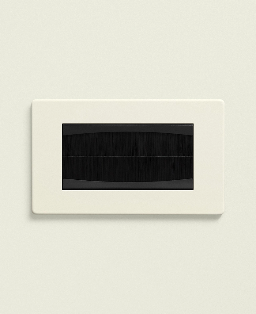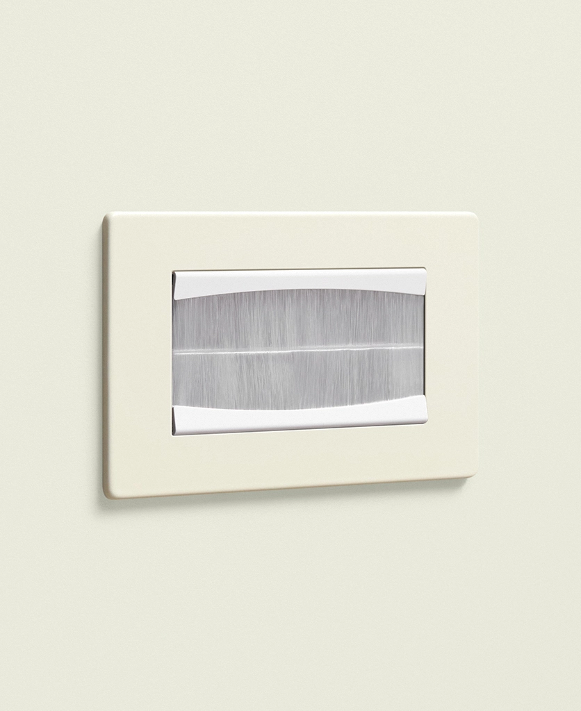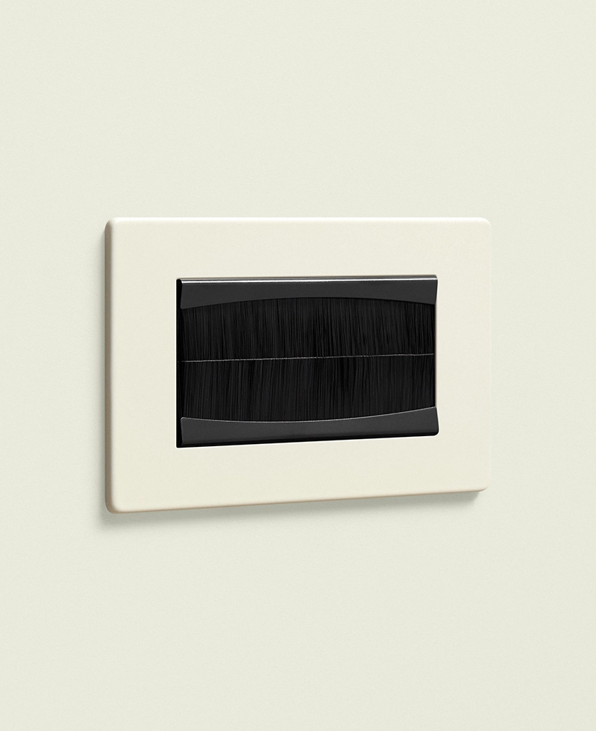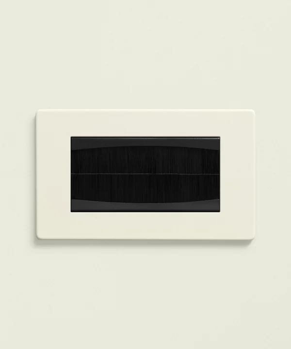 Bunching up the exposed wires behind the TV, you thread them through your new double brush plate and click it into place. Grinning, you can’t believe how much better it looks. The warm, whipped cream shade blends beautifully with the rest of your switches and sockets, and you take great pleasure in knowing this small design detail is there – even if no one else ever sees it.