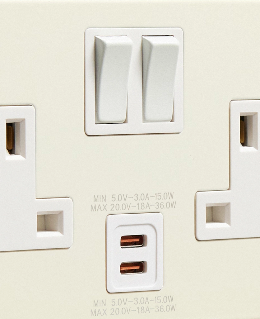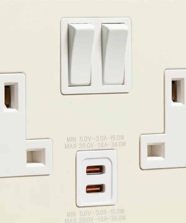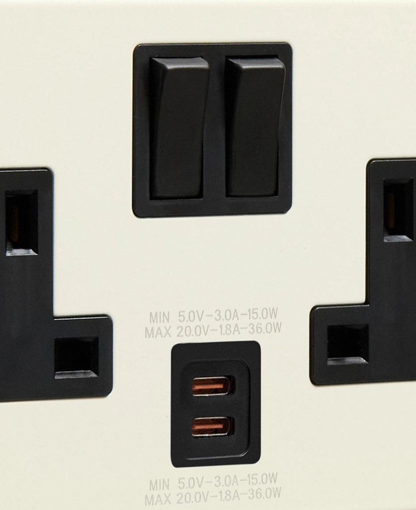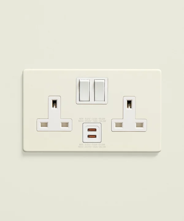 Sliding your charger cable into the USB-C port, you feel the smooth, matt finish of the socket beneath your fingertips. Admiring the creamy, off-white finish, you notice how it blends beautifully into your wall, adding a subtle warmth which your plastic predecessors couldn’t compare to. Reaching for your tablet, you settle into the sofa, knowing everything you need is charged and ready without a single tangled wire in sight.