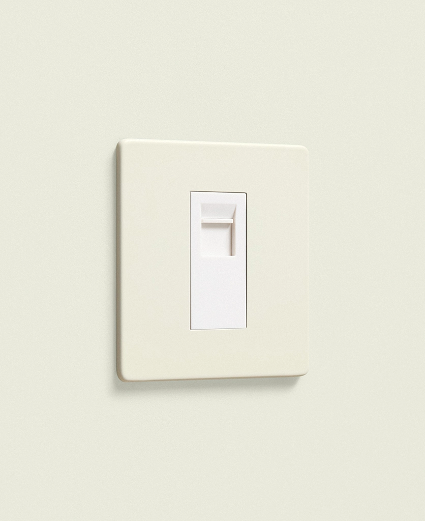 Closing your laptop for the day, you notice the whipped cream single data port concealed behind the screen and smile. Glancing around your office space, you feel a wave of calm wash over you – everything is beautifully coordinated, from your switches and sockets to the neutral décor, making working here an absolute dream.