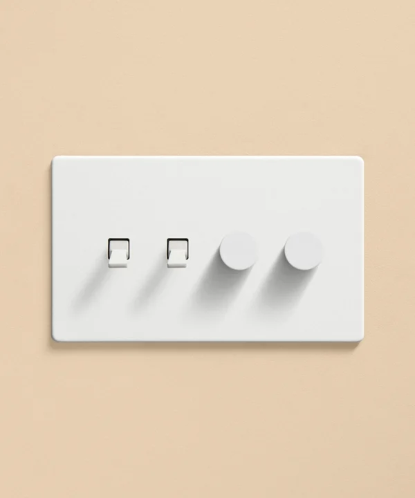 Home / Shop / Light Switches & Sockets / White Plug Sockets & Light Switches / White quadruple combo switch (2 toggle, 2 dimmer)